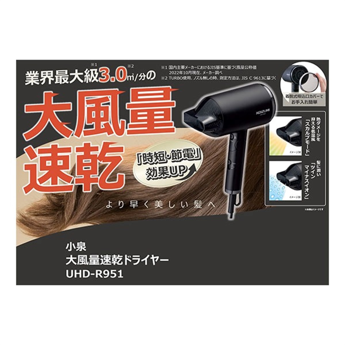 KOIZUMI 大風量速乾ドライヤー UHD-R951BK