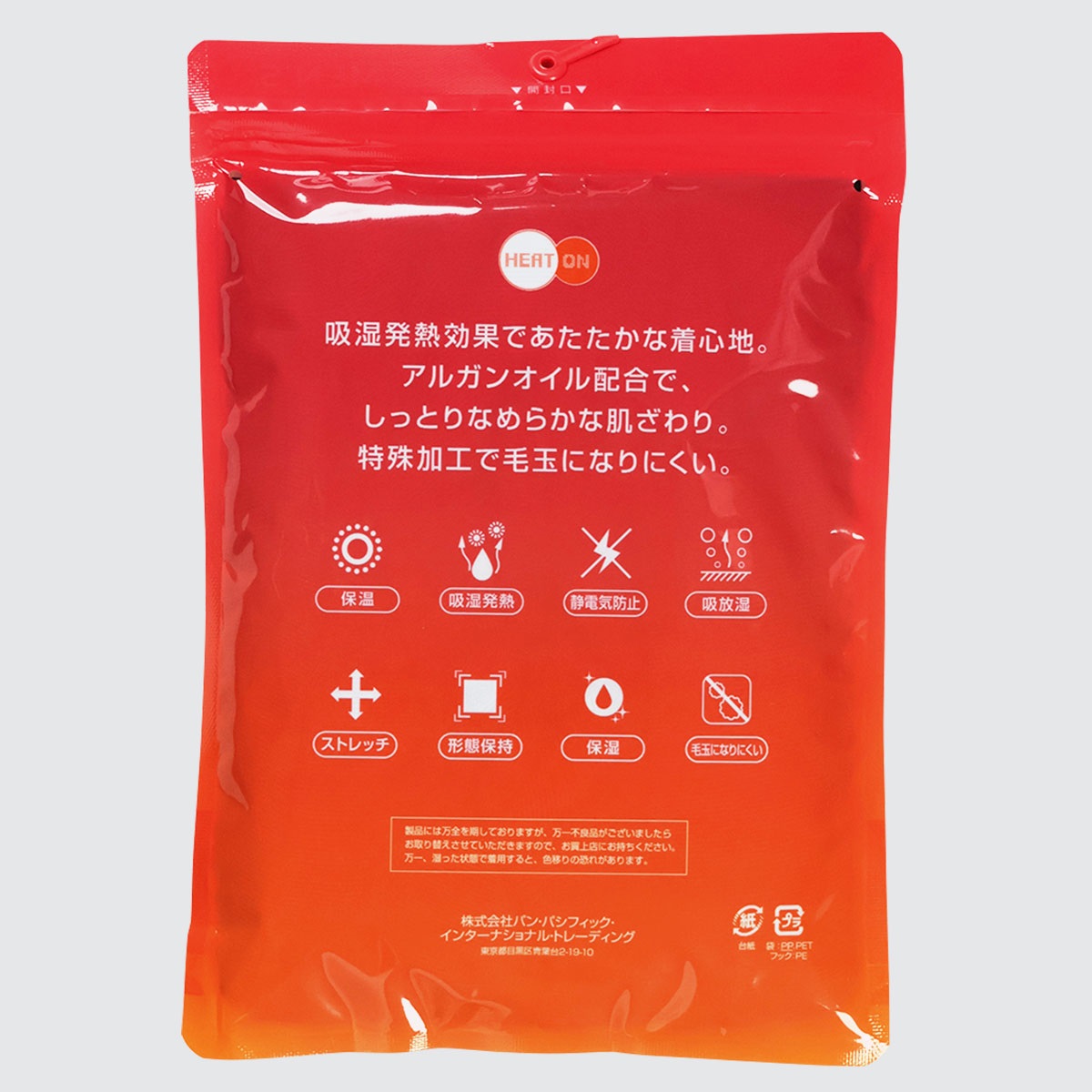吸湿発熱素材で薄いのにしっかり暖かい アルガンオイル配合でしっとりなめらかな肌ざわり 吸湿発熱/保温/保湿/静電気防止/ストレッチ/形態保持/毛玉になりにくい