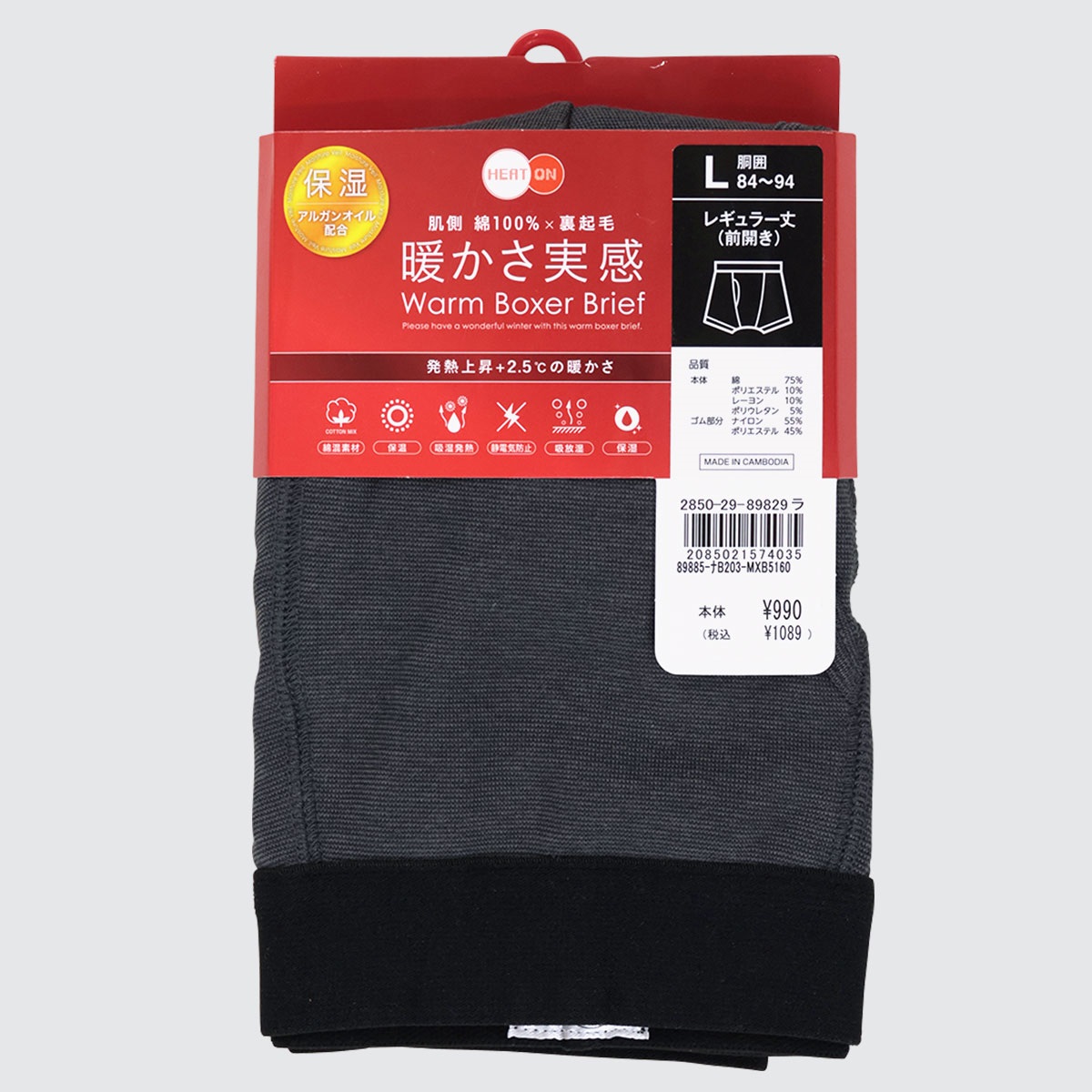 (本体)綿75%、ポリエステル10%、レーヨン10%、ポリエステル5% (ゴム部分)ナイロン55%、ポリエステル45%