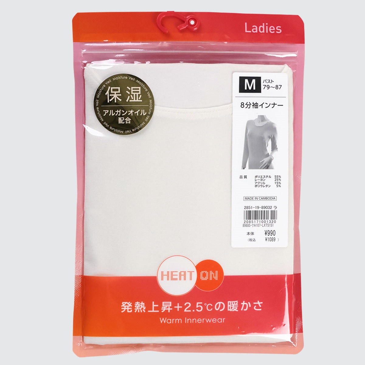 ヒートオン 薄手発熱 8分袖インナー(レギュラーネック)