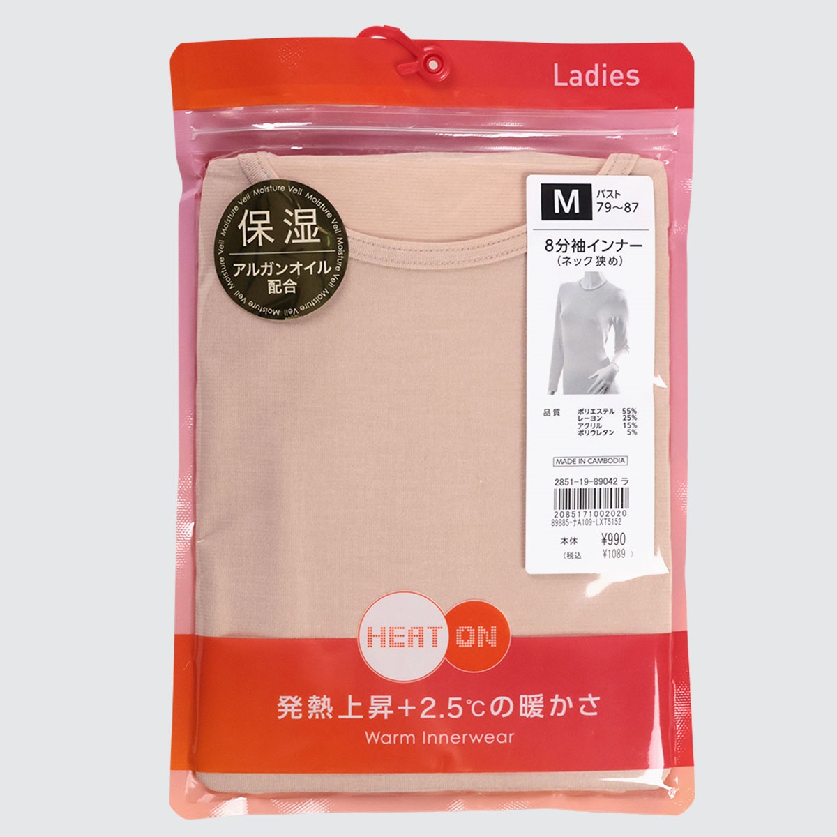 ヒートオン 薄手発熱 8分袖インナー(クルーネック)