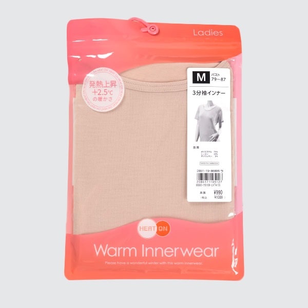 HEAT ON 婦人8分袖インナー(ネック広め)