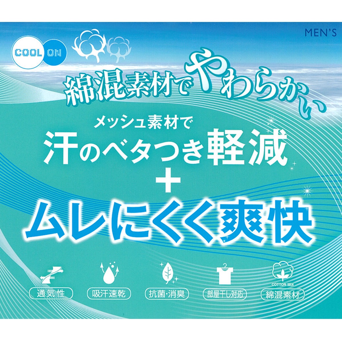 綿混素材でやわらかい、メッシュ素材で汗のベタつきから解放