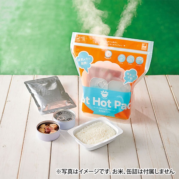 アウトドアや防災用にも使える火や電気を使わずに、蒸気のチカラであたためるカンタン便利な食品加熱パック。