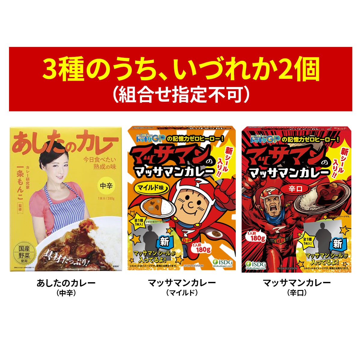 ※『マッサマンカレー(マイルド)』『マッサマンカレー(辛口)』『あしたのカレー(中辛)』の組合せの指定は致しかねます