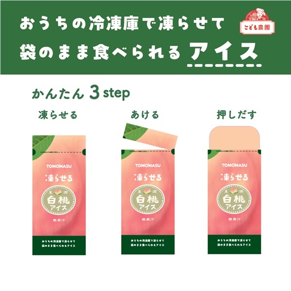 冷凍庫で凍らせて、袋のまま食べられる果実アイスです。