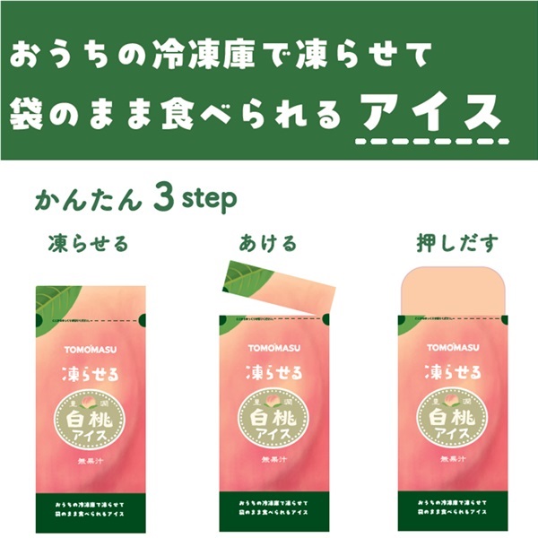 冷凍庫で凍らせて、袋のまま食べられる果実アイスです。