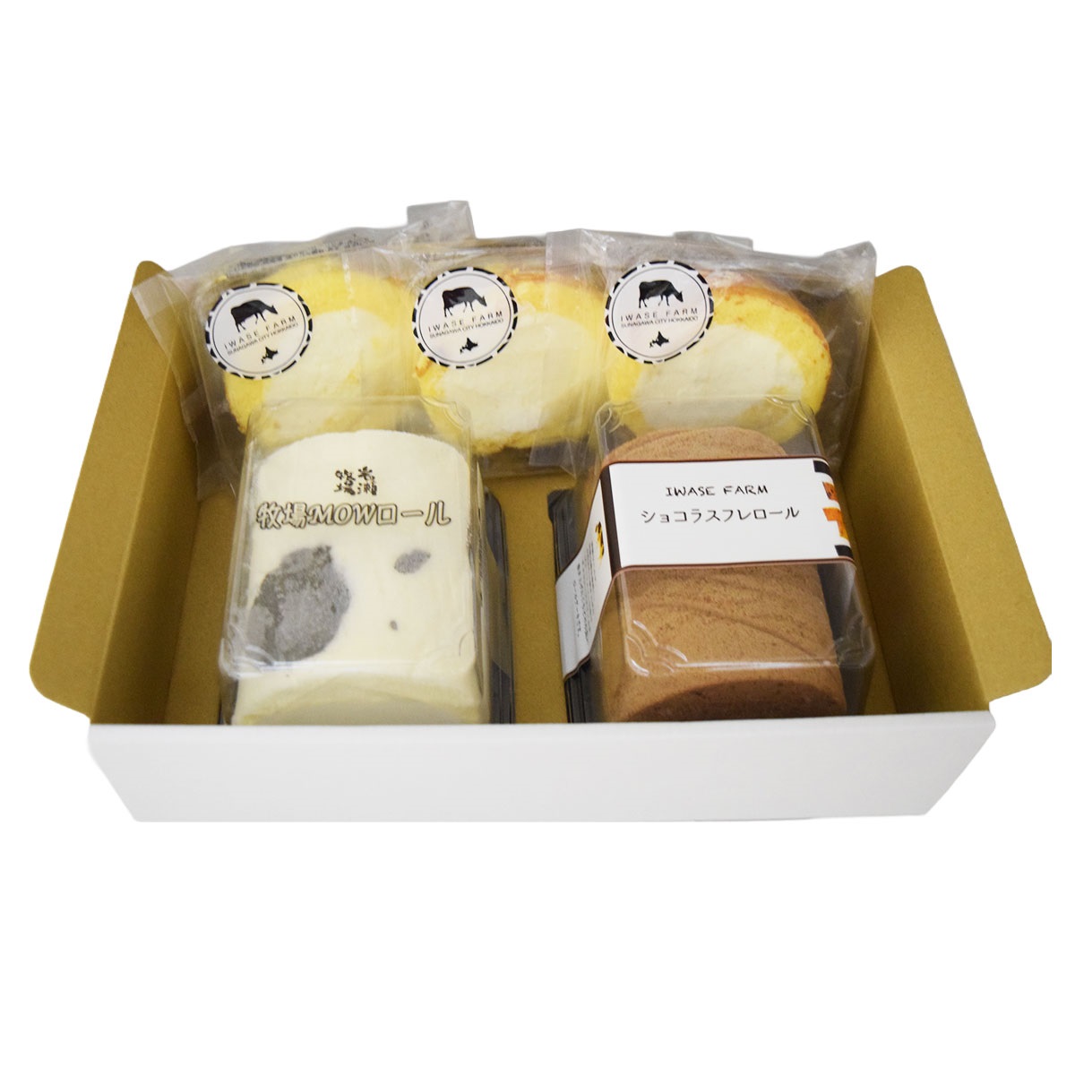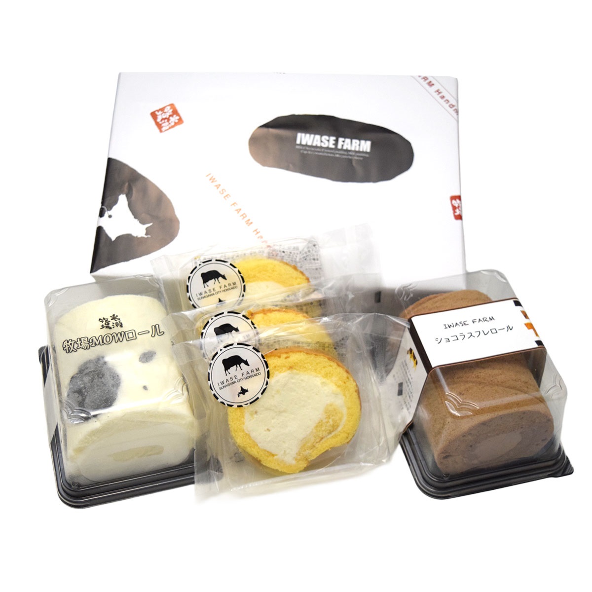 しっとり口どけのよいスフレ生地のロール2種類と、たっぷりの生クリームを巻き上げたロール。岩瀬牧場ならではのセットです。