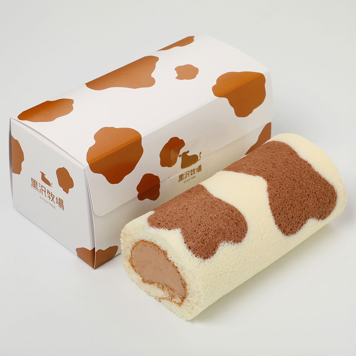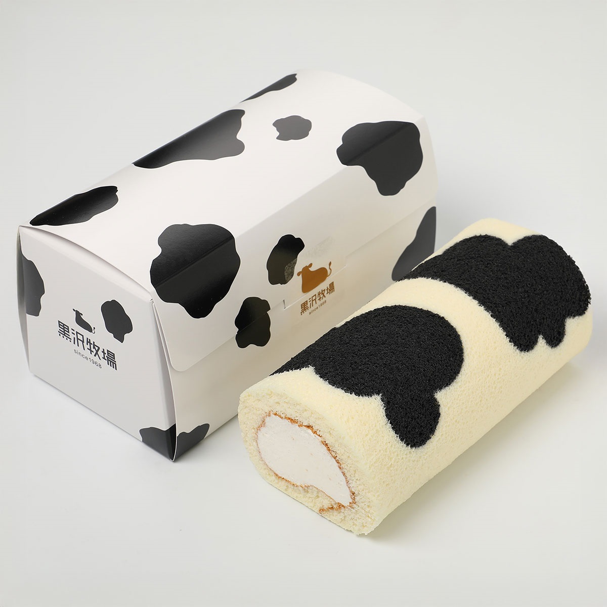 牧場らしさをまるごと表現する、愛らしい牛柄模様のロールケーキです。