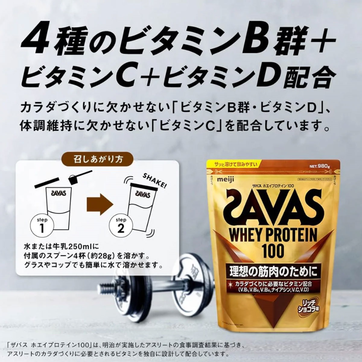 ※『ザバス ホエイプロテイン100』は、明治が実施したアスリートの食事調査結果に基づき、アスリートのカラダづくりに必要とされるビタミンを独自に設計して配合しています。