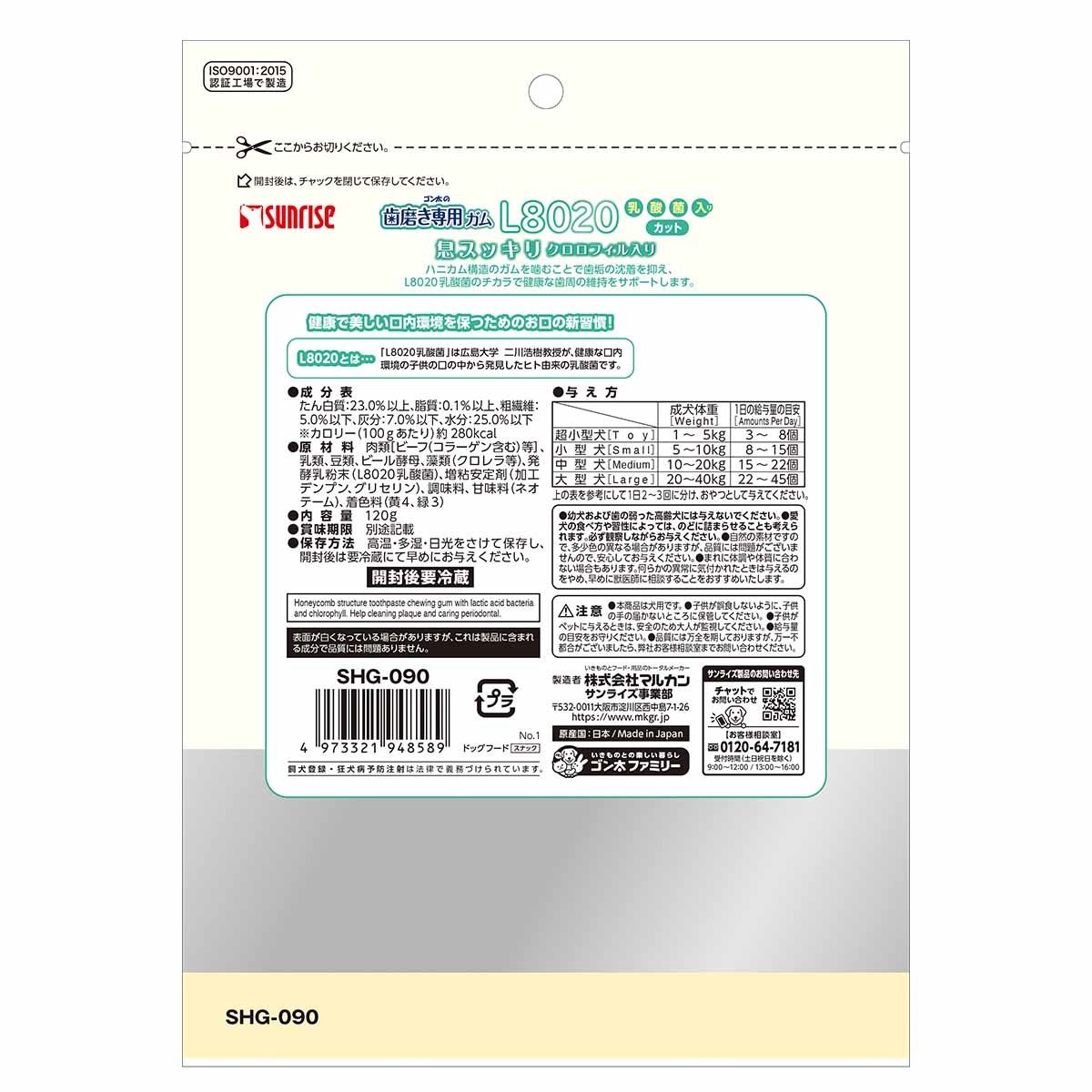 ゴン太の歯磨き専用ガム L8020乳酸菌入り カット クロロフィル入り 120g 賞味期限:2026年8月