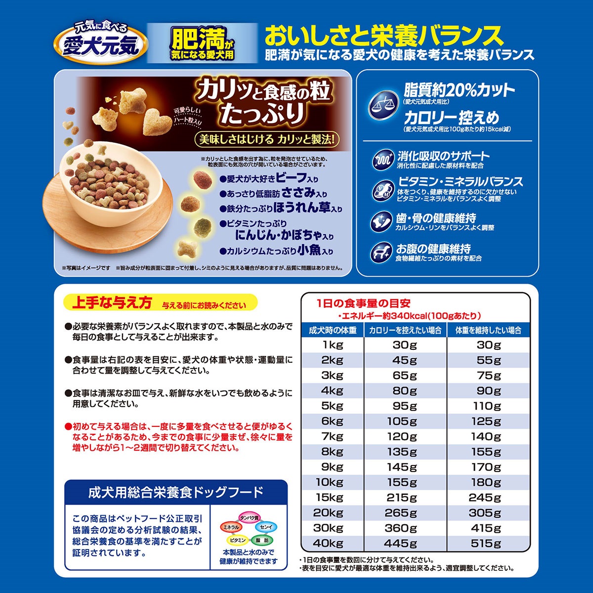 愛犬元気 肥満が気になる愛犬用 ビーフ・ささみ・緑黄色野菜・小魚入り 6kg