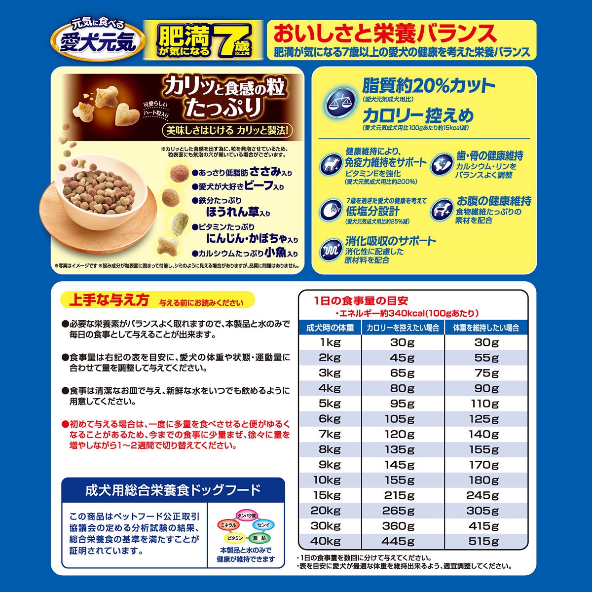 脂質約20%カット(愛犬元気成犬用比)、カロリー控えめ