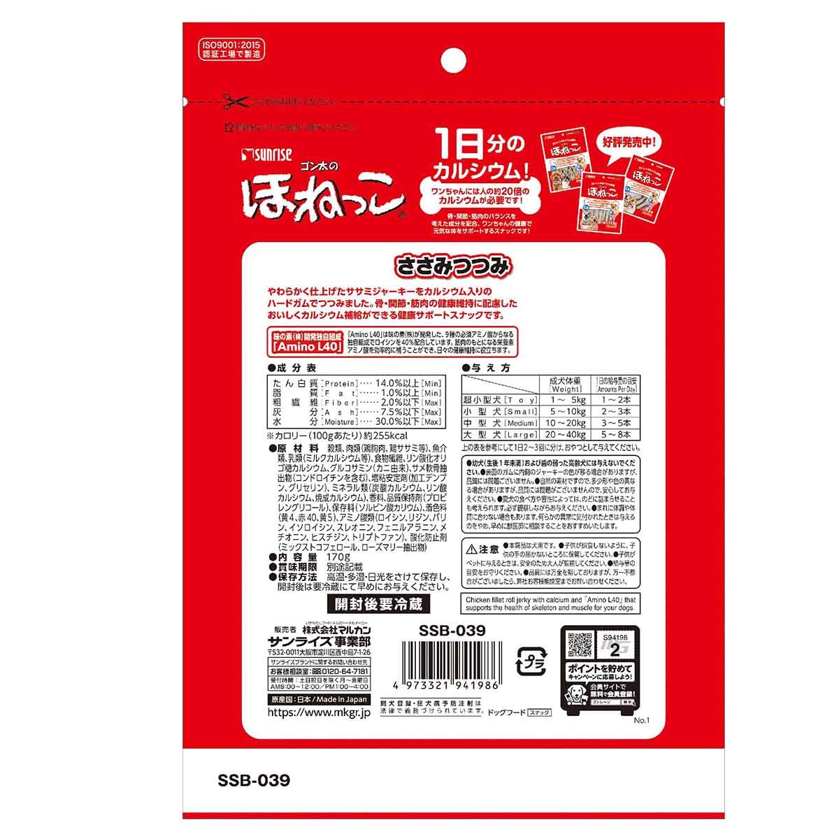 やわらかく仕上げたささみジャーキーにビタミン豊富な野菜を加え、カルシウム入りのハードガムでつつみました。