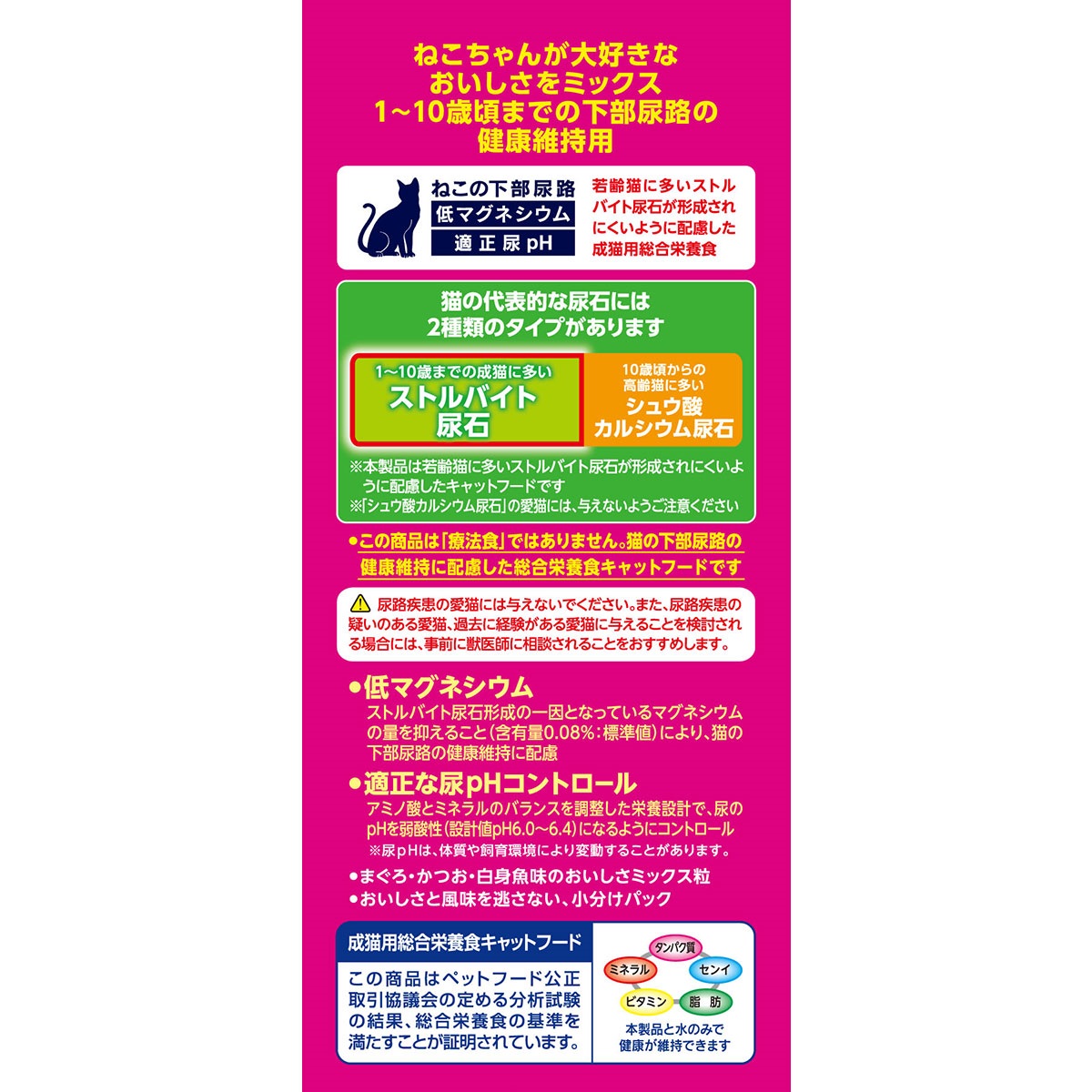 ねこちゃんが大好きなおいしさをミックス、1~10歳頃までの下部尿路の健康維持用