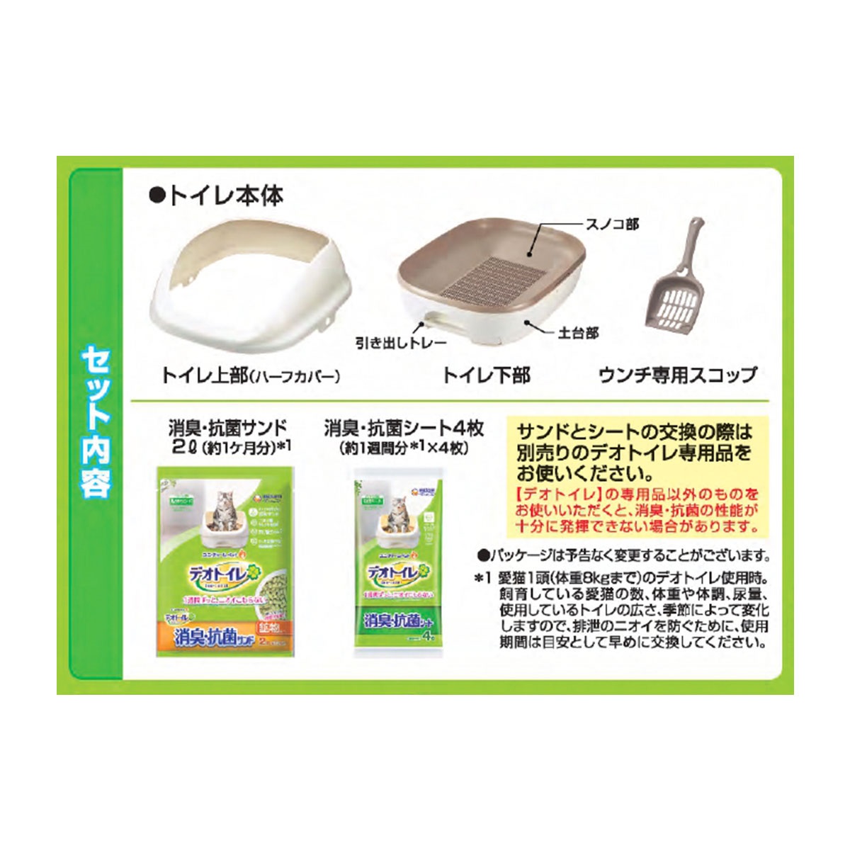 トイレ本体+消臭・抗菌サンド2L(約1ヶ月分)+消臭・抗菌シート約1週間分×4枚+ウンチ専用スコップ