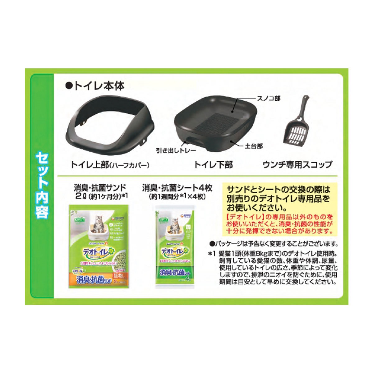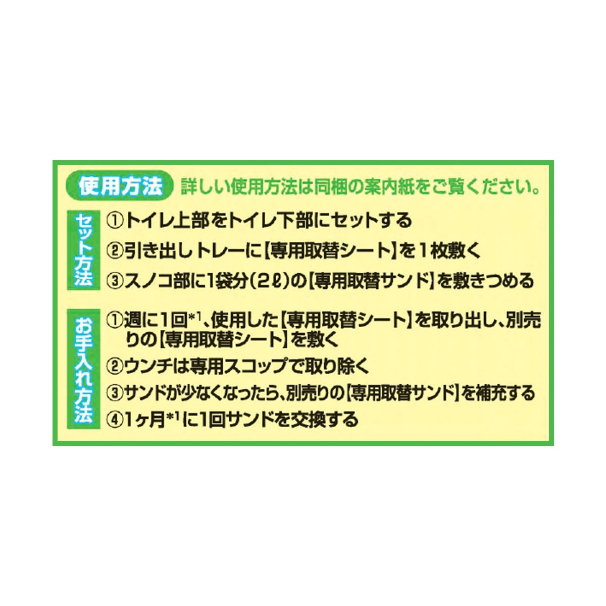 トイレ本体+消臭・抗菌サンド2L(約1ヶ月分)+消臭・抗菌シート約1週間分×4枚+ウンチ専用スコップ