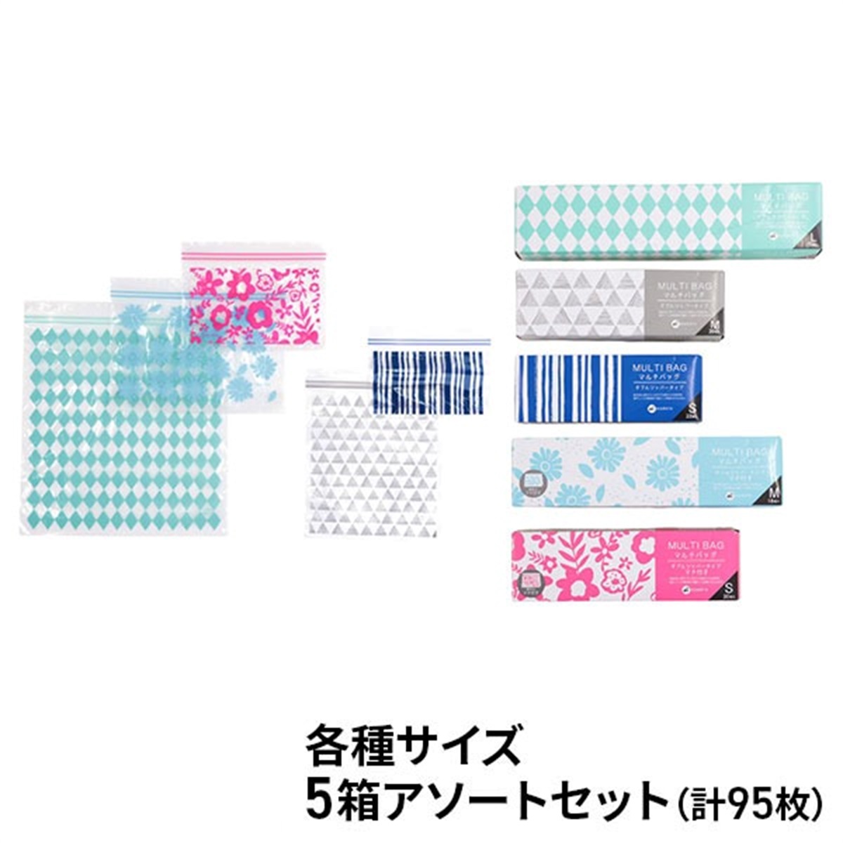 ・デザインマルチバッグ ダブルジッパー5箱アソートセット(95枚)
