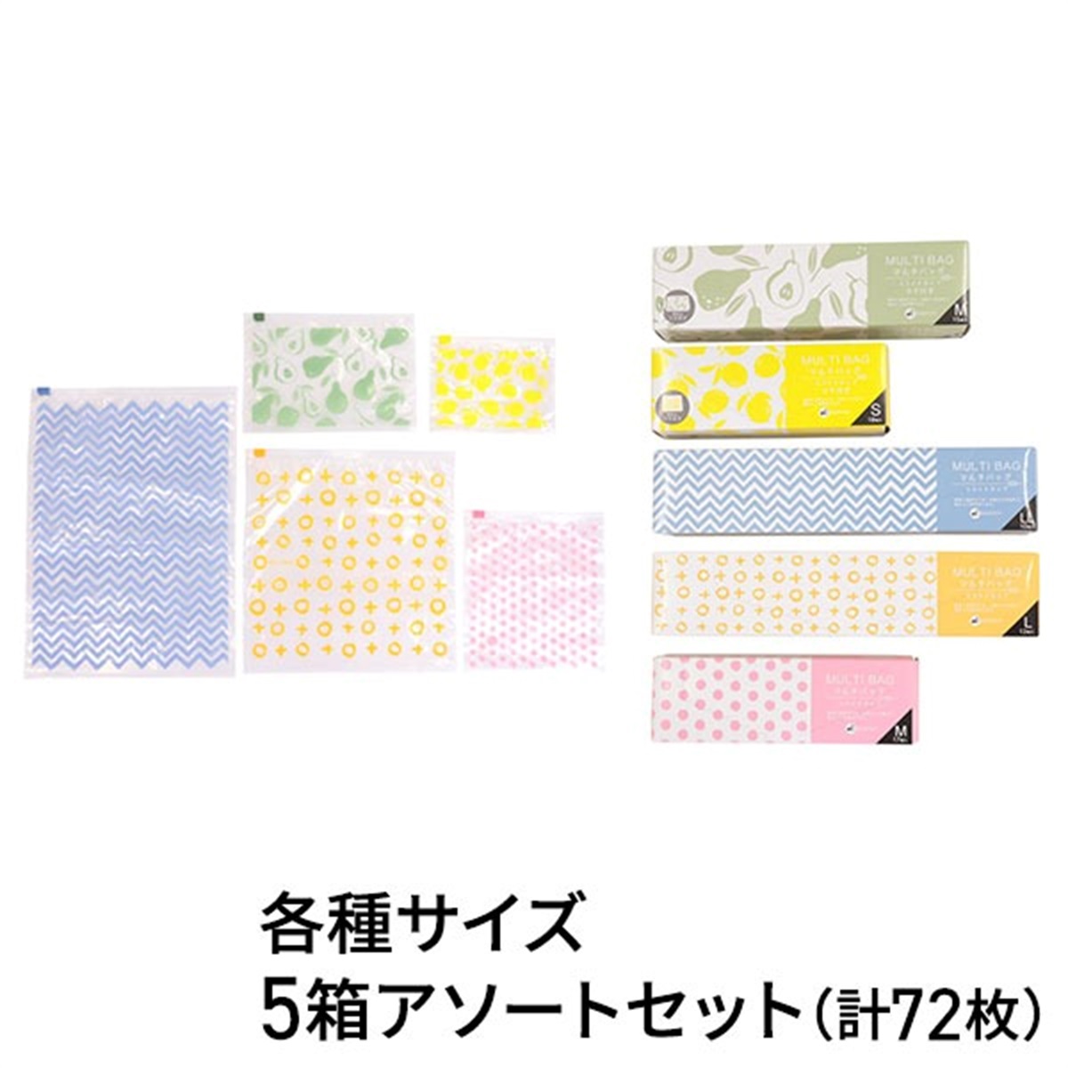 ・デザインマルチバッグスライドジッパー各種5箱アソートセット(72枚)