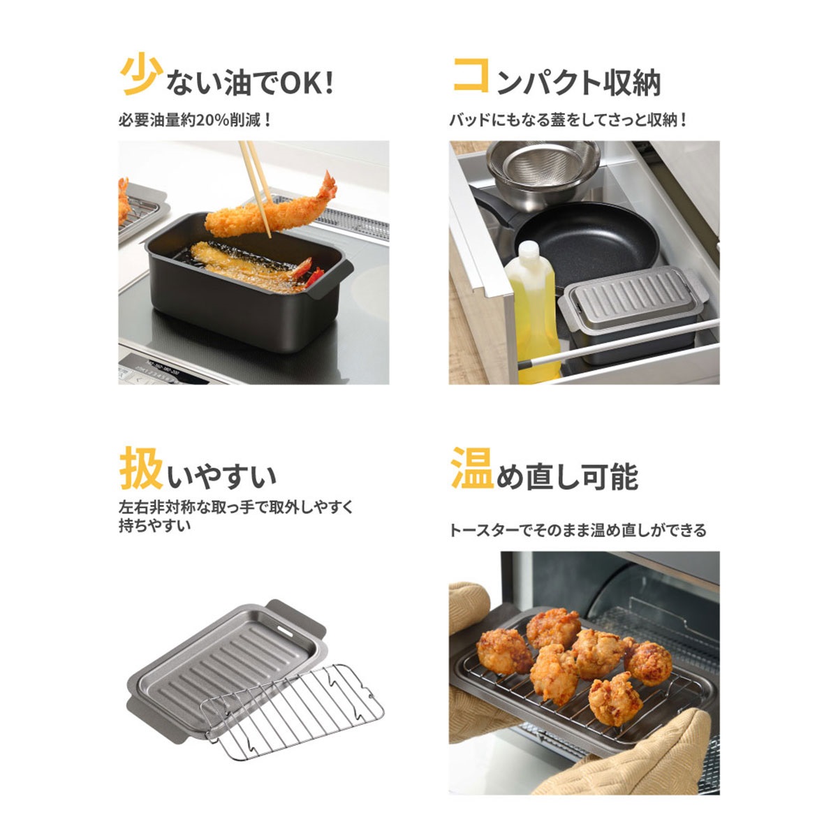 コンパクト設計の揚げ鍋なら、後片付けが簡単。