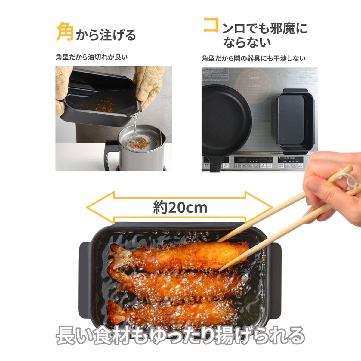 ・ポコフリット IH対応角型揚げ鍋 寸法:約20×12cm