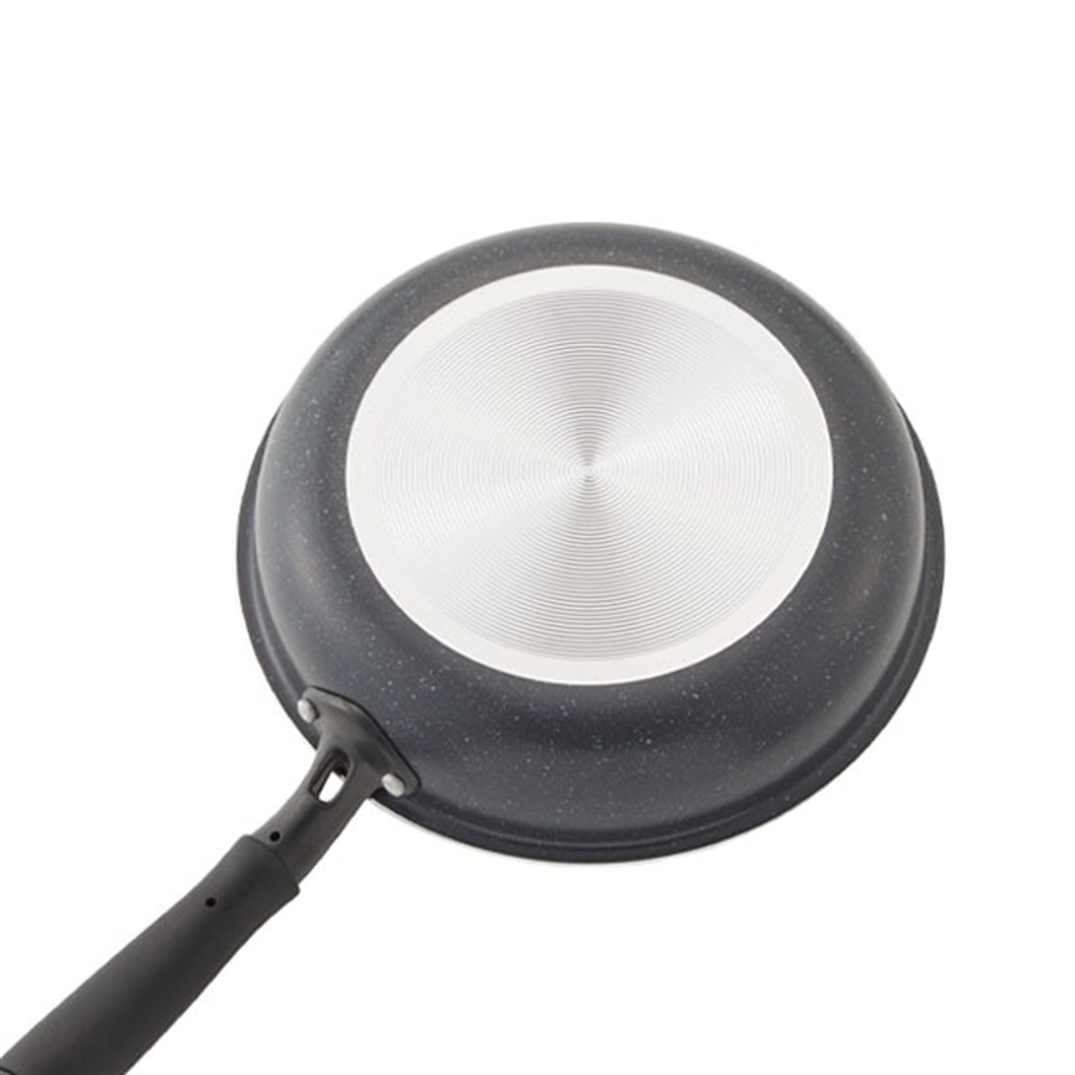 内面はこびりつきにくく、金属ヘラが使え3層マーブルコートふっ素樹脂加工。