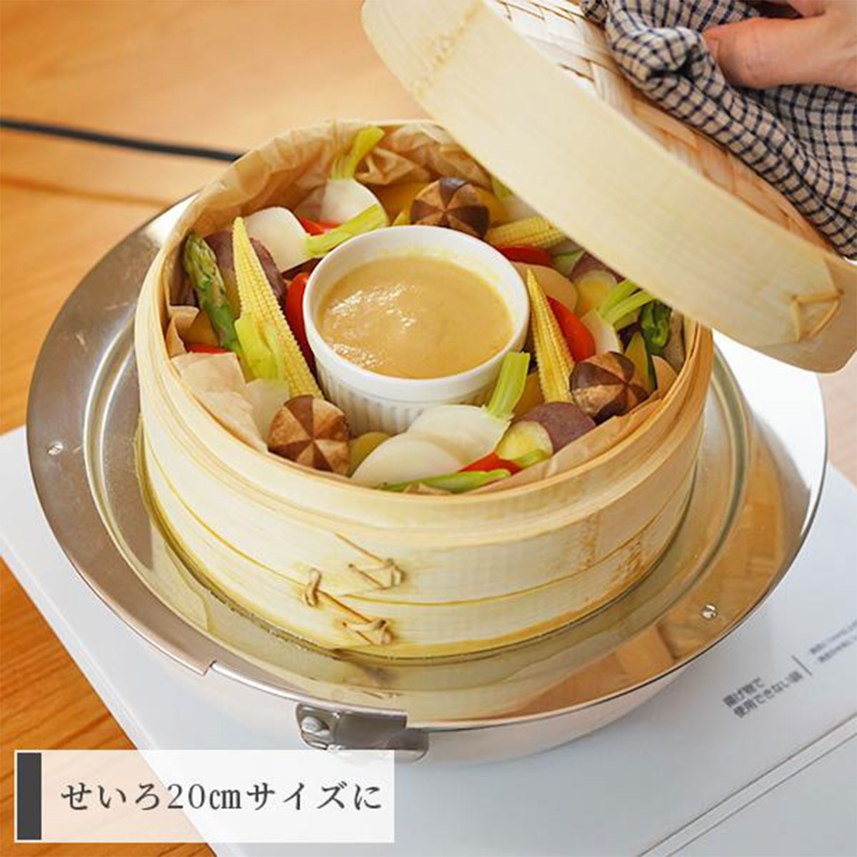 キッチンにある道具を活用しながら、蒸し料理をもっと手軽に。収納にも場所を取らず、ステンレス製だからお手入れも簡単です。
