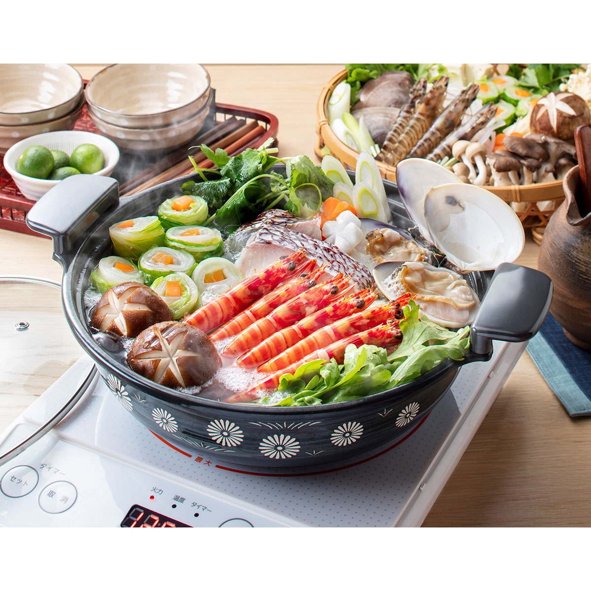 本体:ほうろう用鋼板、内面:ほうろう加工、外面:ほうろう加工、つまみ:メラミンフェノール樹脂、蓋:全面物理強化ガラス