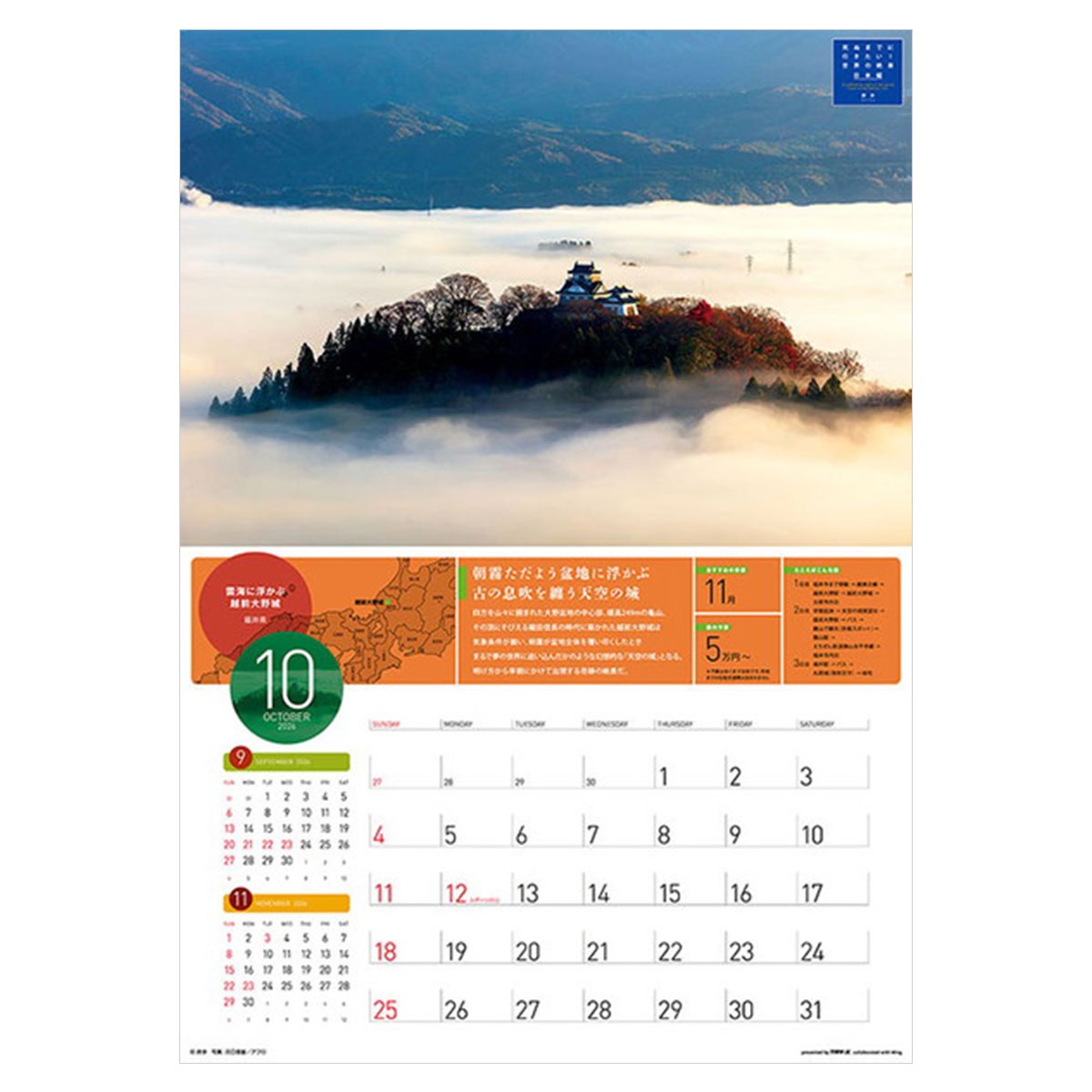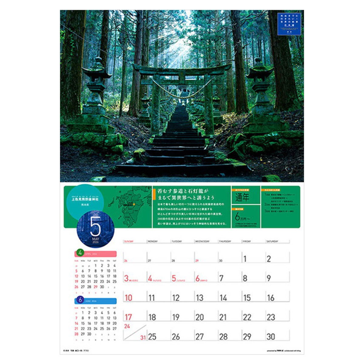2026年カレンダー 死ぬまでに行きたい!世界の絶景 日本編