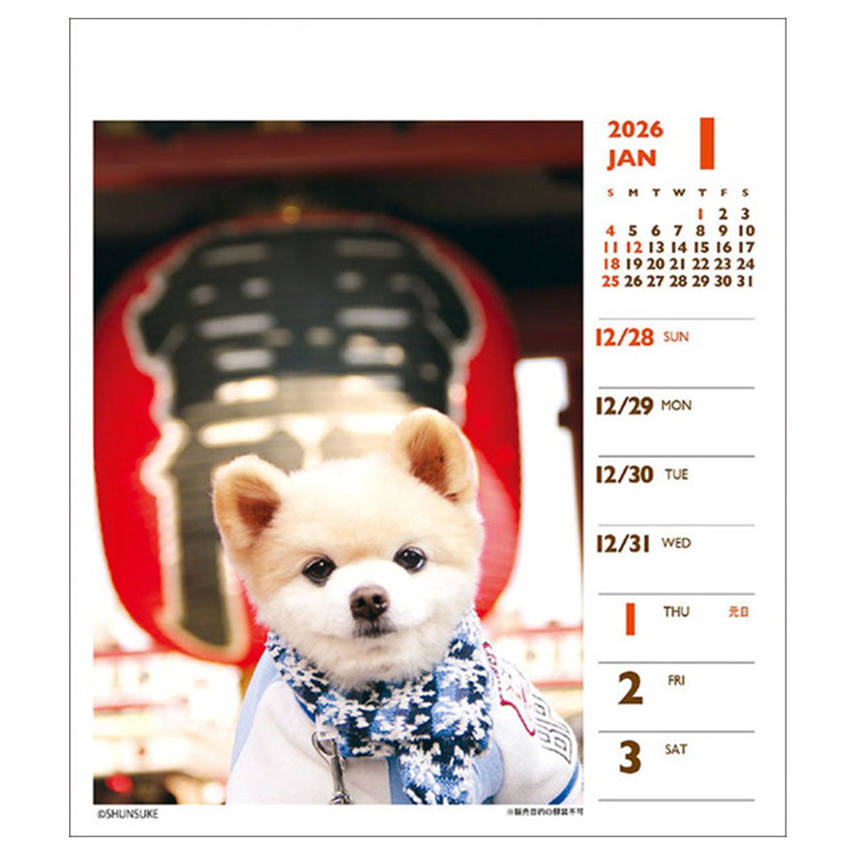 2026年カレンダー 俊介 週めくりミニ