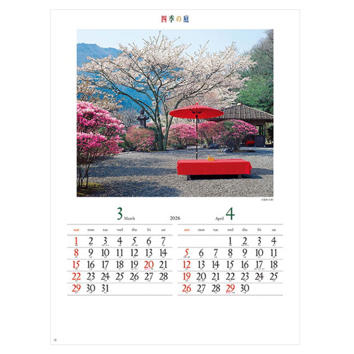 2026年カレンダー 四季の庭