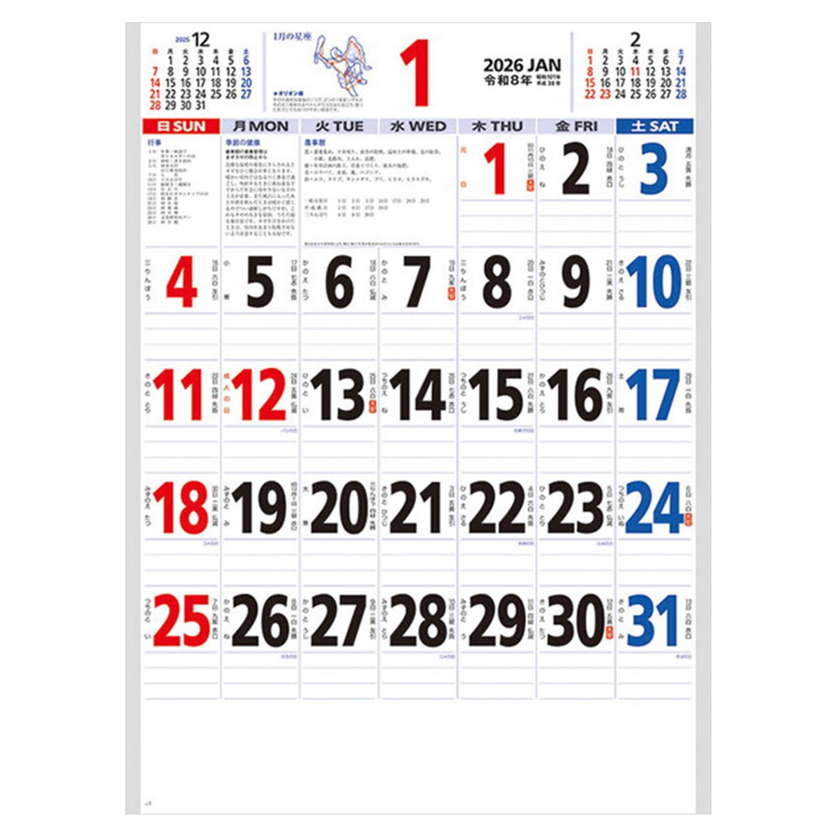 2026年カレンダー 星座入り文字月表