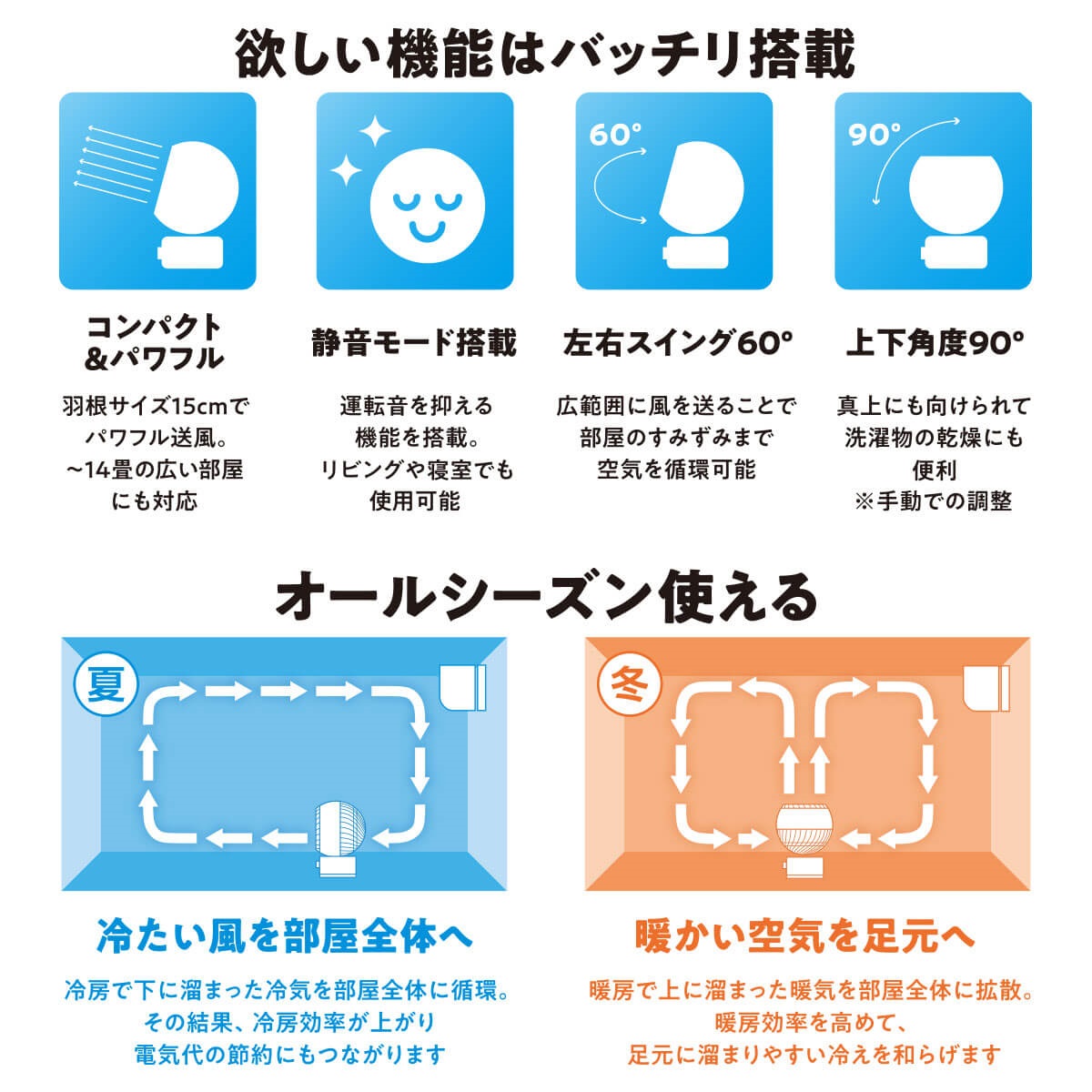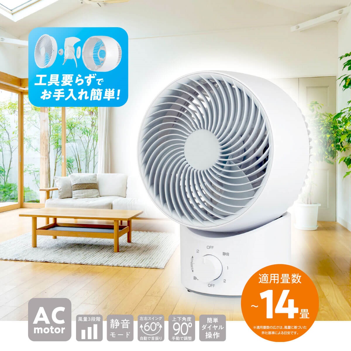 山善 15cmメカ式ACサーキュレーター PPAS-BFKW15-WH