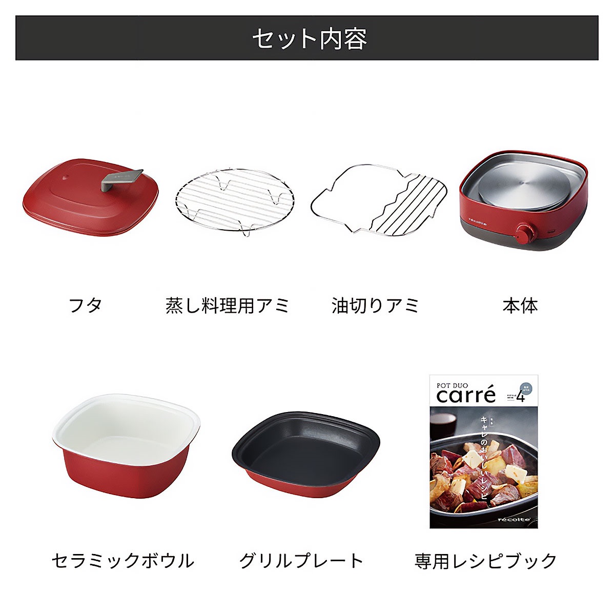 フランス語でスクエア型を意味するキャレは、スタイリッシュな角丸の四角いフォルムが特長です。