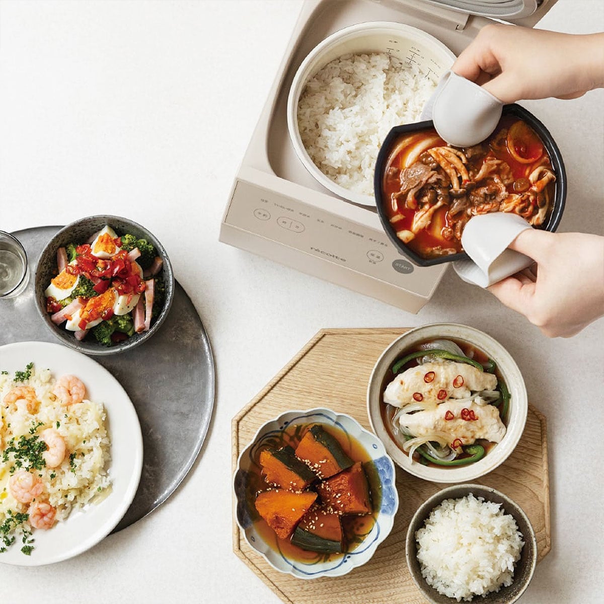 トレイを使って『2段調理』ができる、ご飯と一緒におかずも作れる炊飯器。