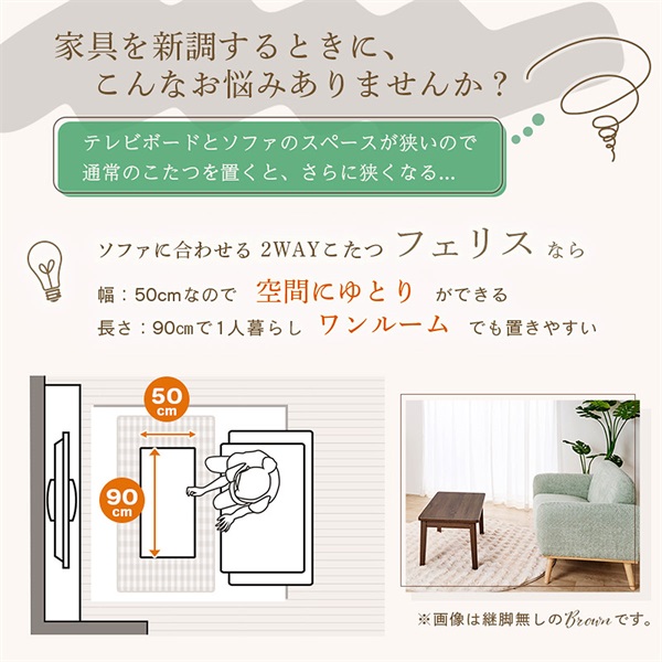 「ユアサプライムス ソファ前こたつ本体 フェリス90 ブラウン」は販売期間前です。