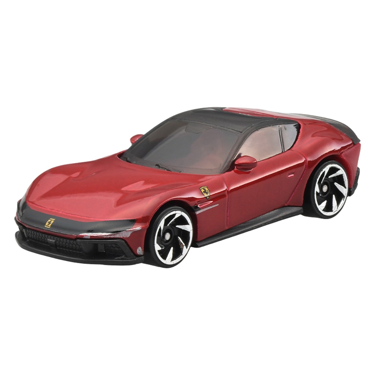 2024年発表のフェラーリ最新フラッグシップ「12チリンドリ」は、830馬力を発生する6.5L V12エンジンを搭載し、最高速度は340km/h。名は“12気筒”を意味する。デザインは往年のフェラーリへのオマージュで、特に365GTB/4(デイトナ)を思わせるロングノーズが特徴。ホットウィールでは、ダイキャストとプラ製パーツの分割で特徴的なウィンドウ周りを再現している。