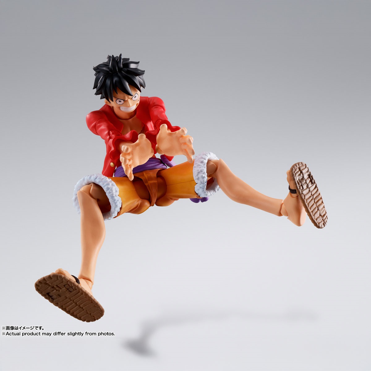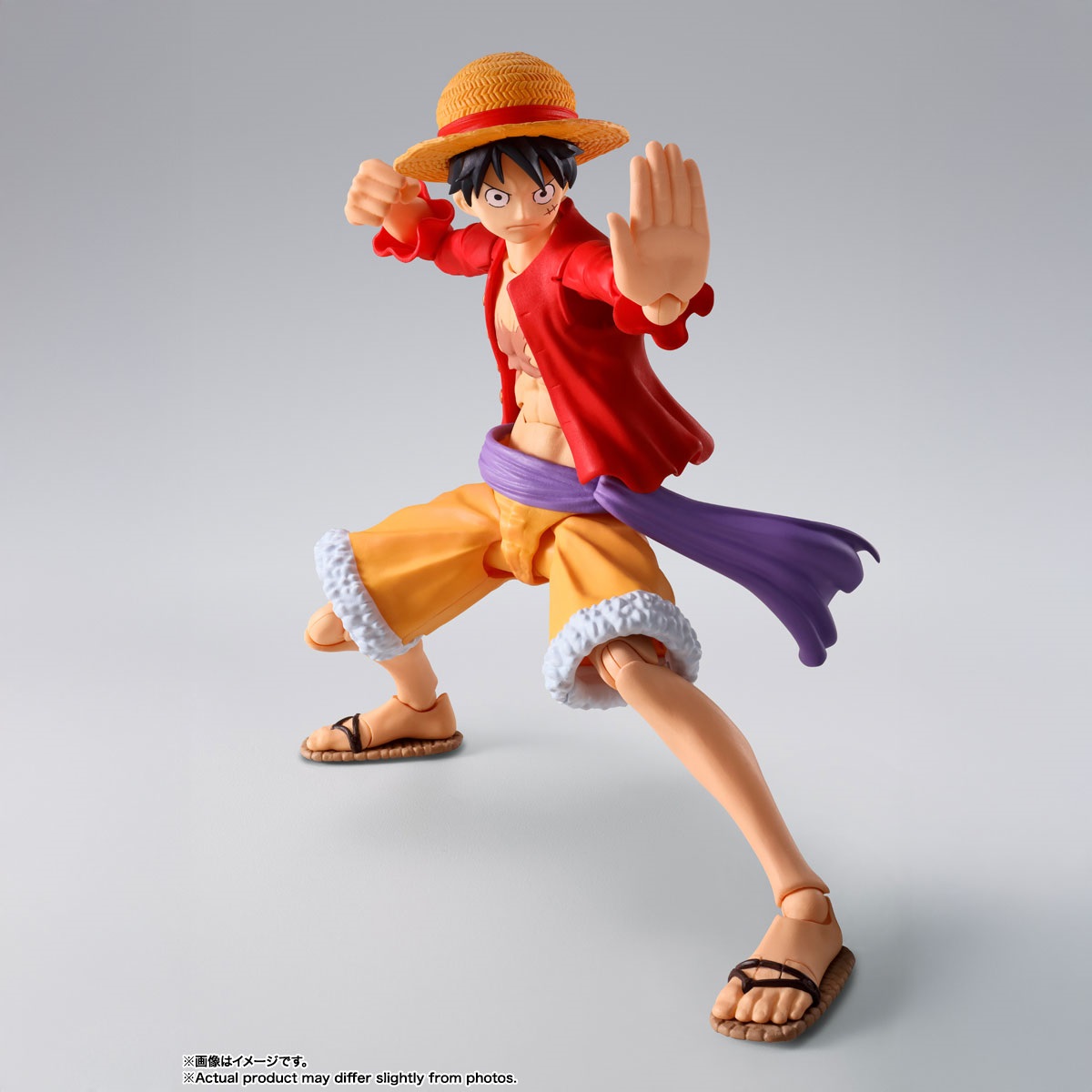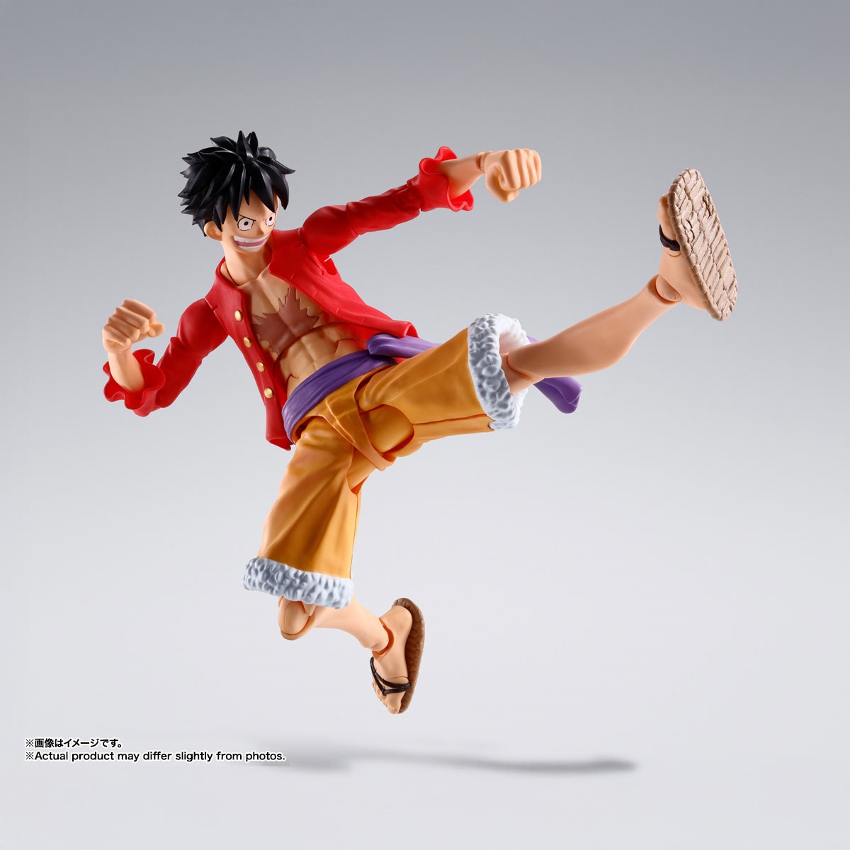 鬼ヶ島討入衣装の「モンキー・D・ルフィ」が登場!TVアニメ『ONE PIECE』より、鬼ヶ島討入衣装の「モンキー・D・ルフィ」が完全新規造形で登場!圧倒的な可動域に加え軟質パーツを用いることで、ダイナミックなポージングが可能。アクションフィギュアシリーズであるS.H.Figuartsだからこそ、様々なポーズがカッコよく決まる!肩関節や腹部、草履の可動処理など圧倒的にこだわった可動機構によって、躍動感あふれるアクションシーンが再現可能!シャツには軟質素材を採用し、アクションを妨げず自然なフォルムでのポージングを実現。通常顔に加え、口開き笑顔、食いしばり顔、驚き顔の3種が交換用表情パーツとして付属。