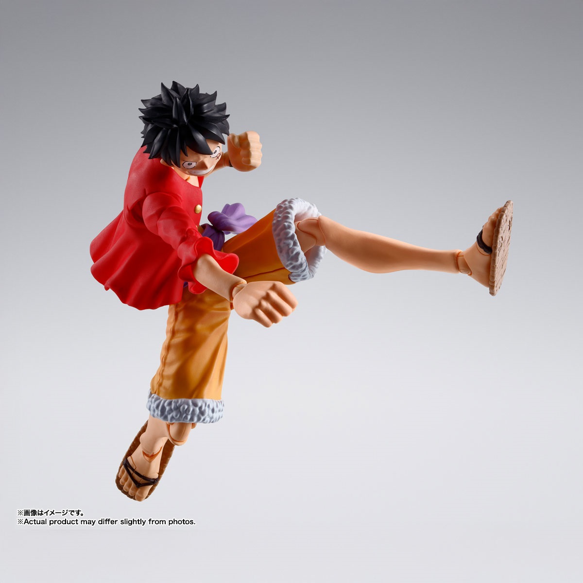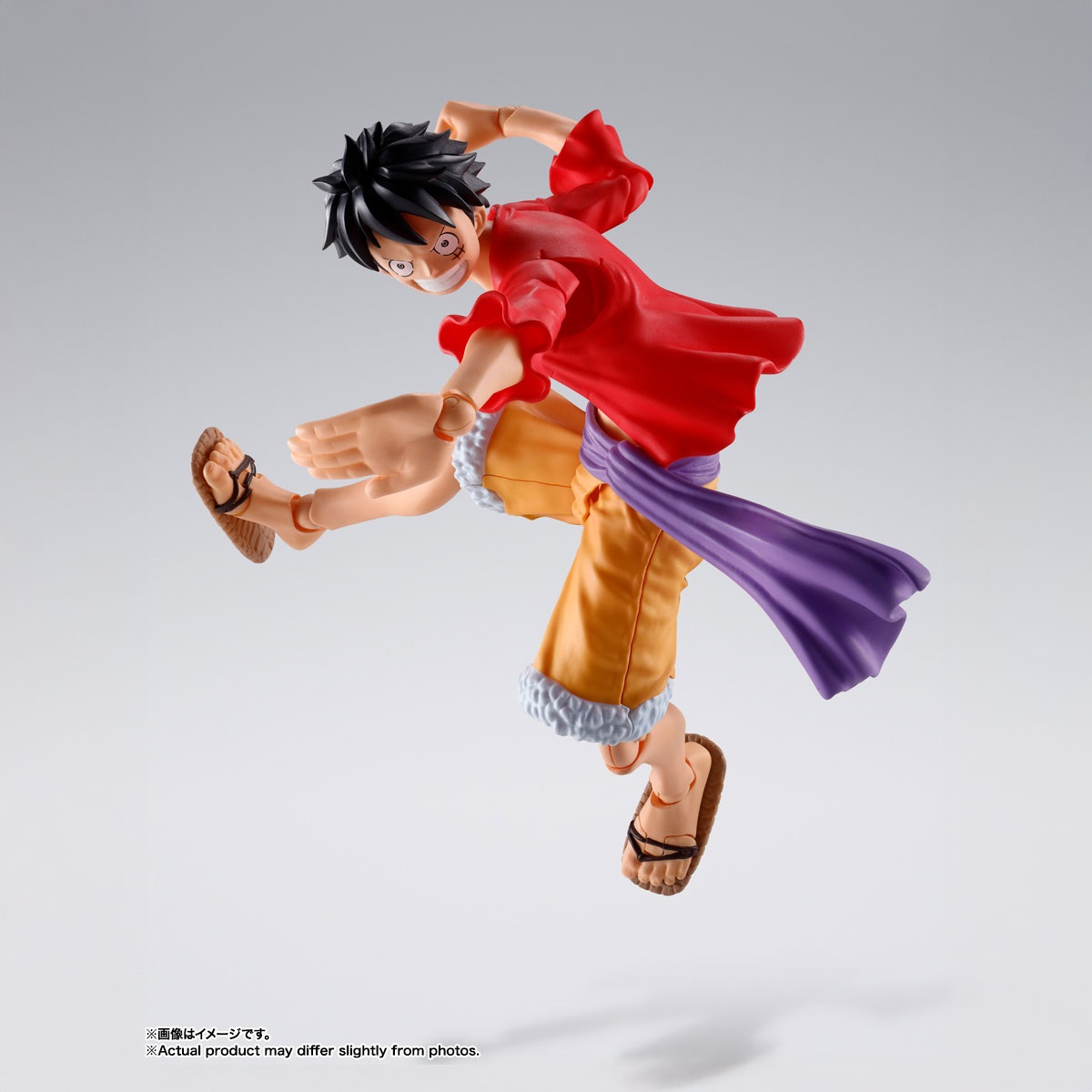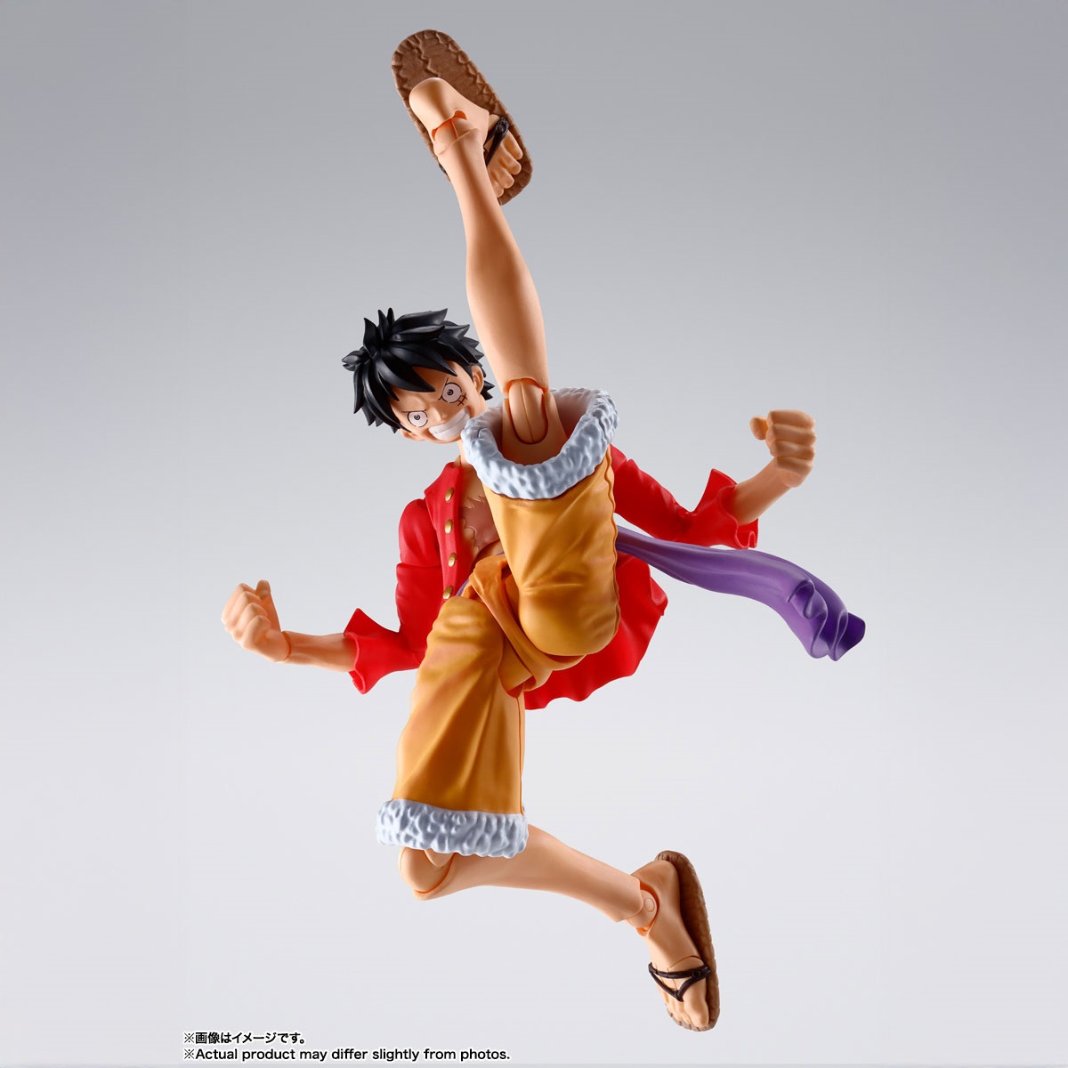 鬼ヶ島討入衣装の「モンキー・D・ルフィ」が登場!TVアニメ『ONE PIECE』より、鬼ヶ島討入衣装の「モンキー・D・ルフィ」が完全新規造形で登場!圧倒的な可動域に加え軟質パーツを用いることで、ダイナミックなポージングが可能。アクションフィギュアシリーズであるS.H.Figuartsだからこそ、様々なポーズがカッコよく決まる!肩関節や腹部、草履の可動処理など圧倒的にこだわった可動機構によって、躍動感あふれるアクションシーンが再現可能!シャツには軟質素材を採用し、アクションを妨げず自然なフォルムでのポージングを実現。通常顔に加え、口開き笑顔、食いしばり顔、驚き顔の3種が交換用表情パーツとして付属。