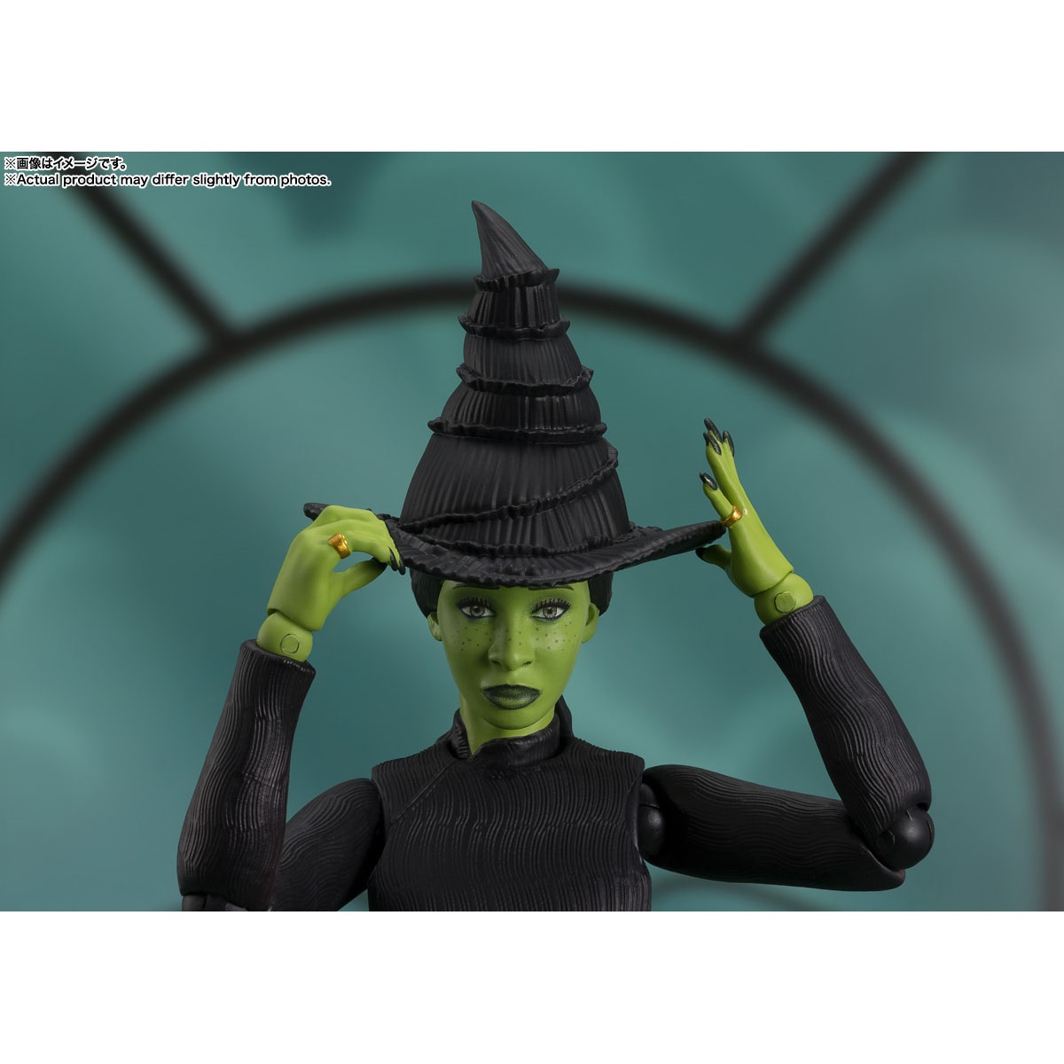 映画『ウィキッド ふたりの魔女』より、シンシア・エリヴォ演じる「エルファバ」がS.H.Figuarts化!<オズの国>で“悪い魔女”となった「エルファバ」の象徴的なグリーンの肌と漆黒のドレスとケープ、そして「グリンダ」から贈られた帽子など、様々なオプションパーツで作品の世界観を手のひらサイズで再現。「魂のデジタル彩色」による繊細な表情パーツも全3種付属。箒に跨り空へと飛び立つアクションポーズも再現可能。