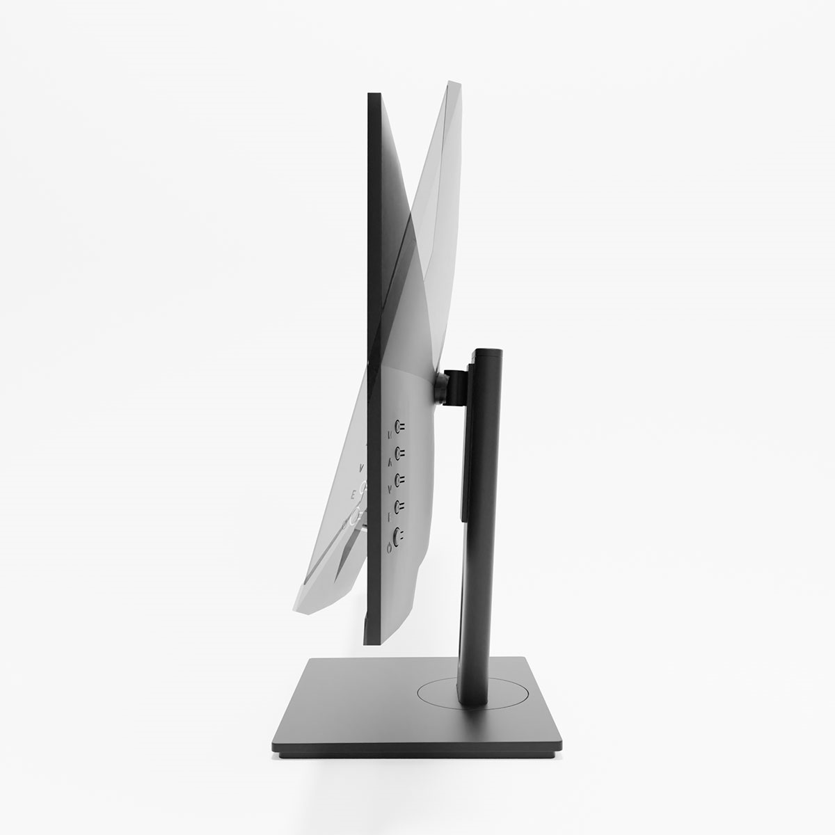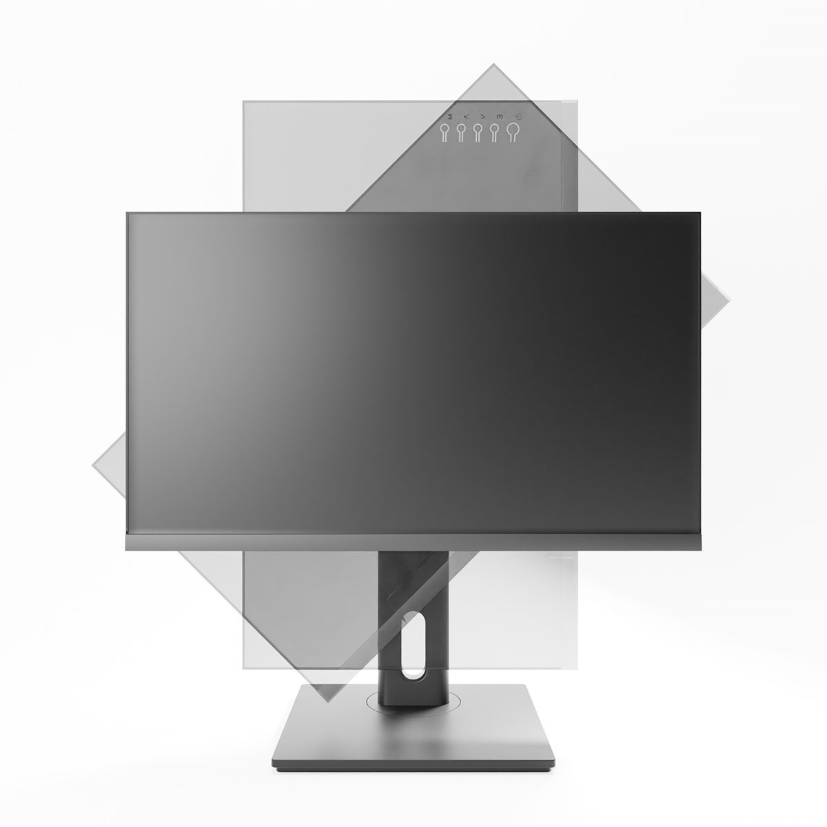 ・画面の高さ調整、前後の角度調整(チルト機能)、左右の回転(スイベル機能)、90度回転(ピボット機能)に対応したマルチスタンドを採用。