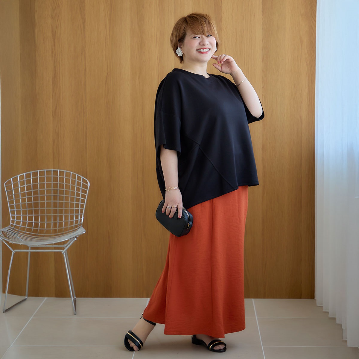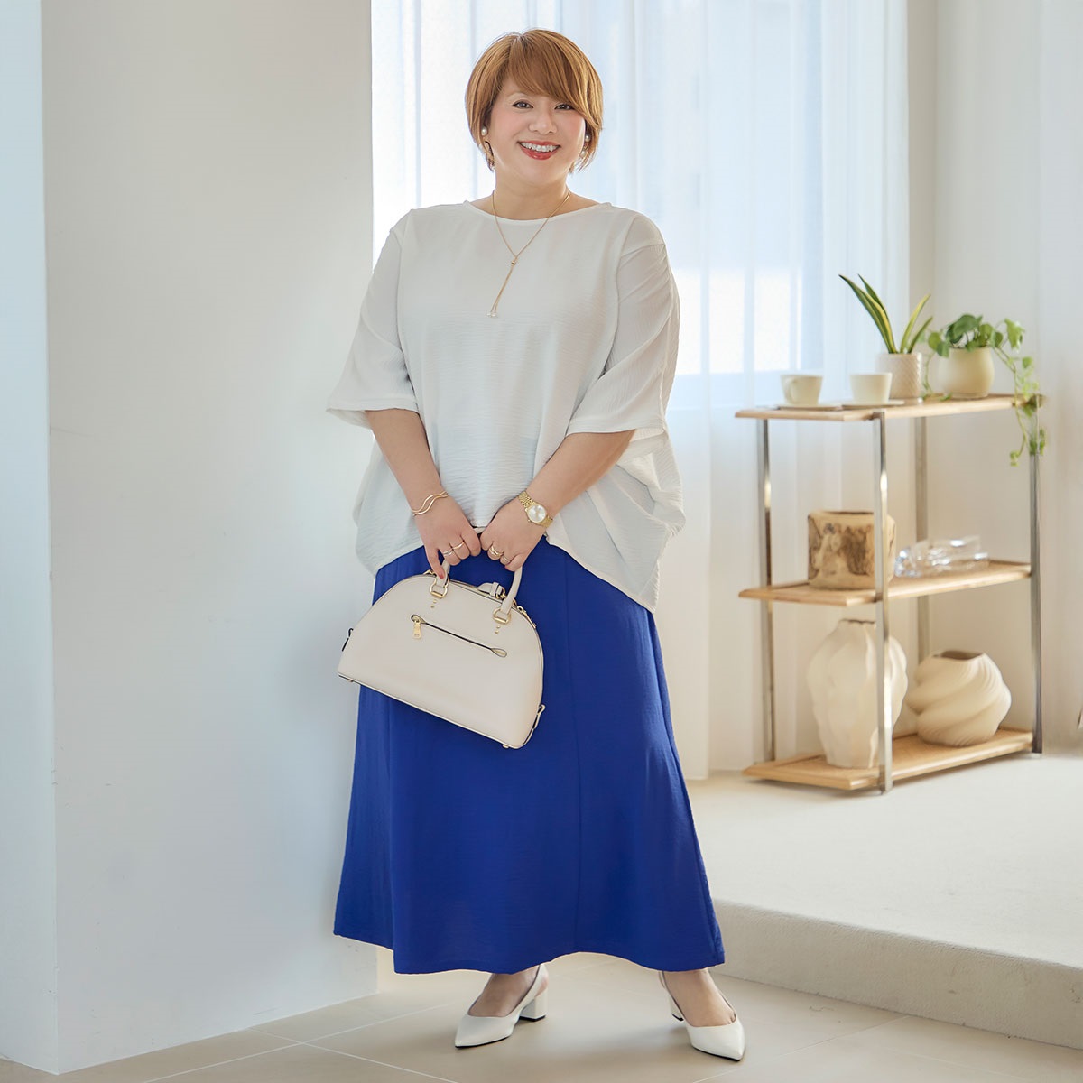 ポイント③:ゆるやかマーメイドラインで身体のラインをひろいにくく女性らしいシルエットに!