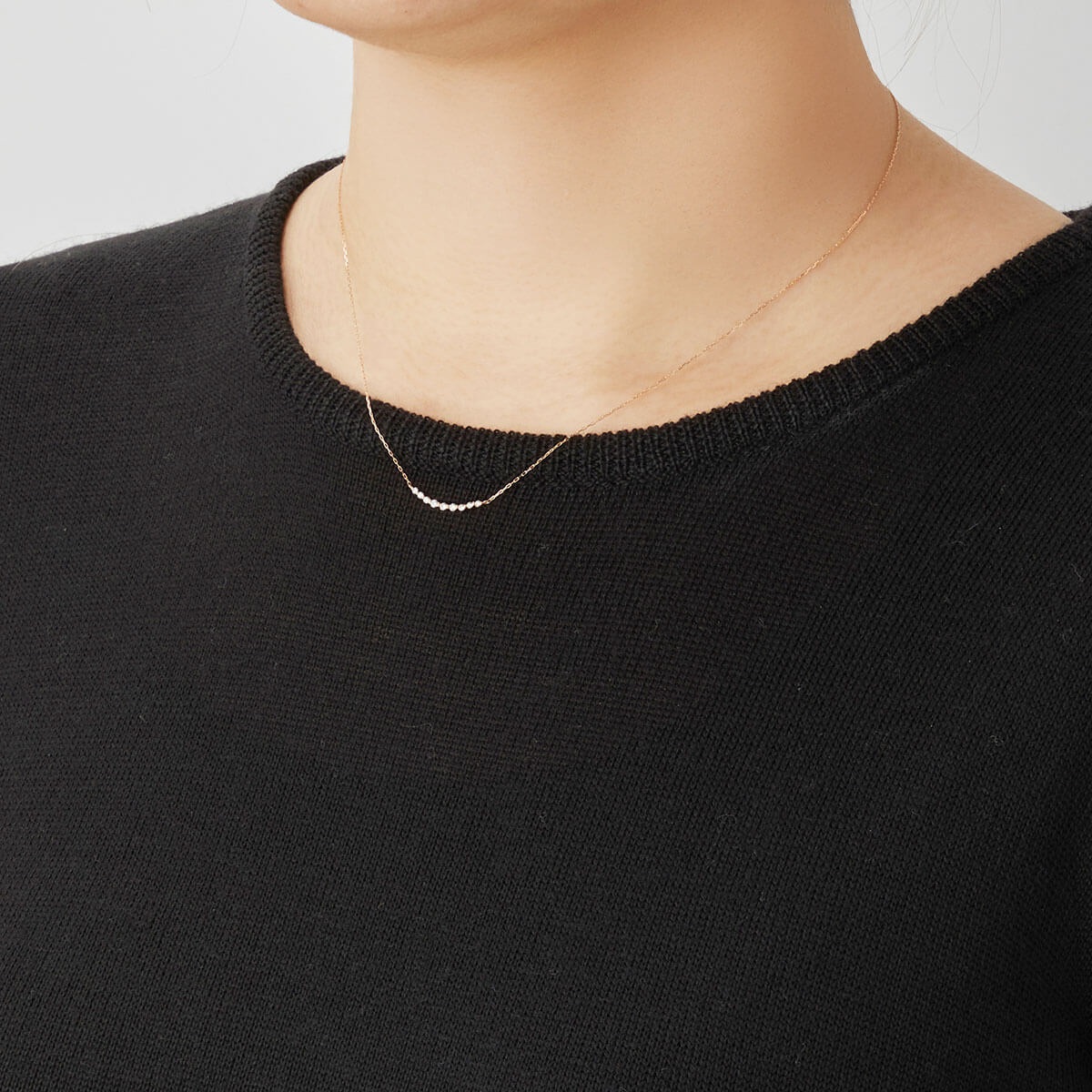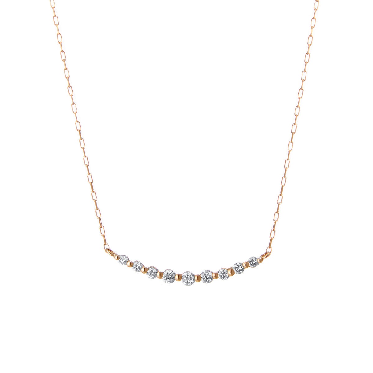 0.1ctのダイヤモンドが上品に輝く、K18ピンクゴールドの華奢なダイヤモンドネックレスです。