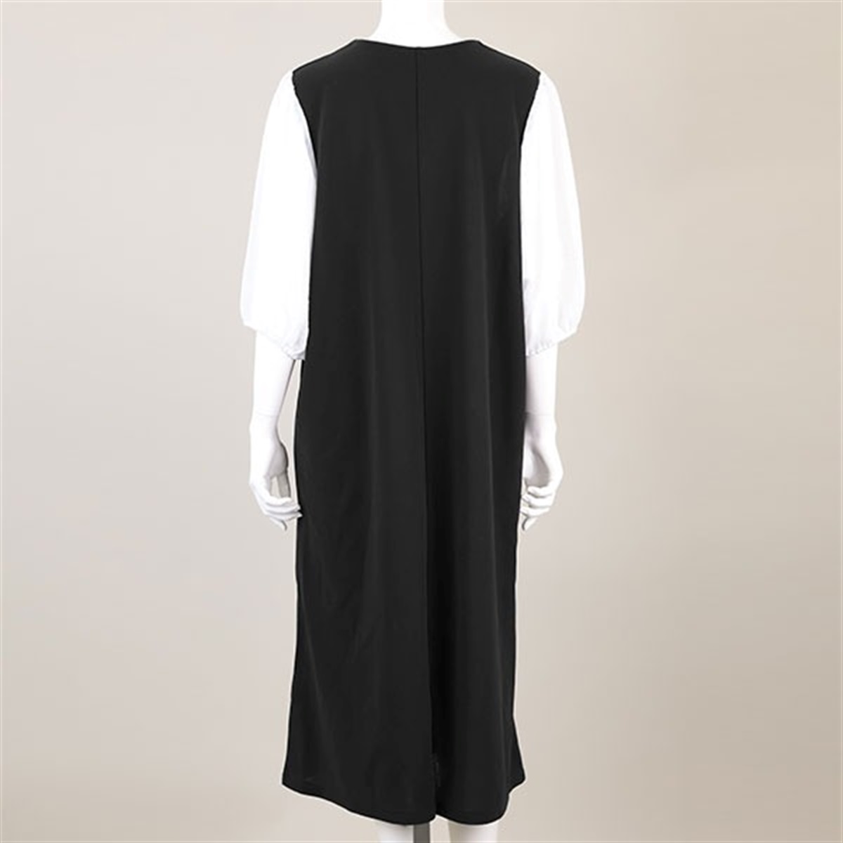 袖異素材のドッキング・ワンピース