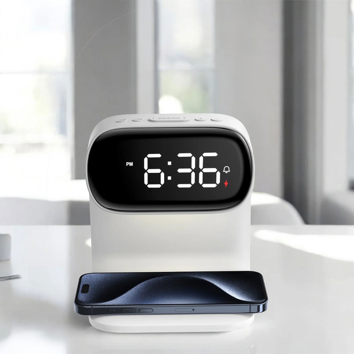 ワイヤレス充電(10W) USBタイプCケーブル アラームスヌーズ ヘットライト付き、明るさ切替え3段階  液晶明るさ切替2段階+オフ