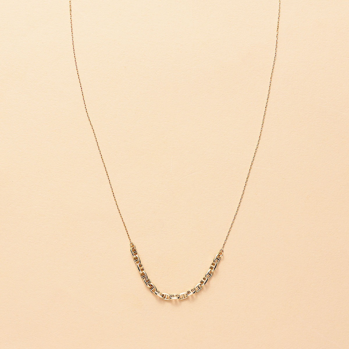 特徴的なフォルムをもつミニチェーンが連なり 軽やかなラインを描く「Orlen」ネックレス
