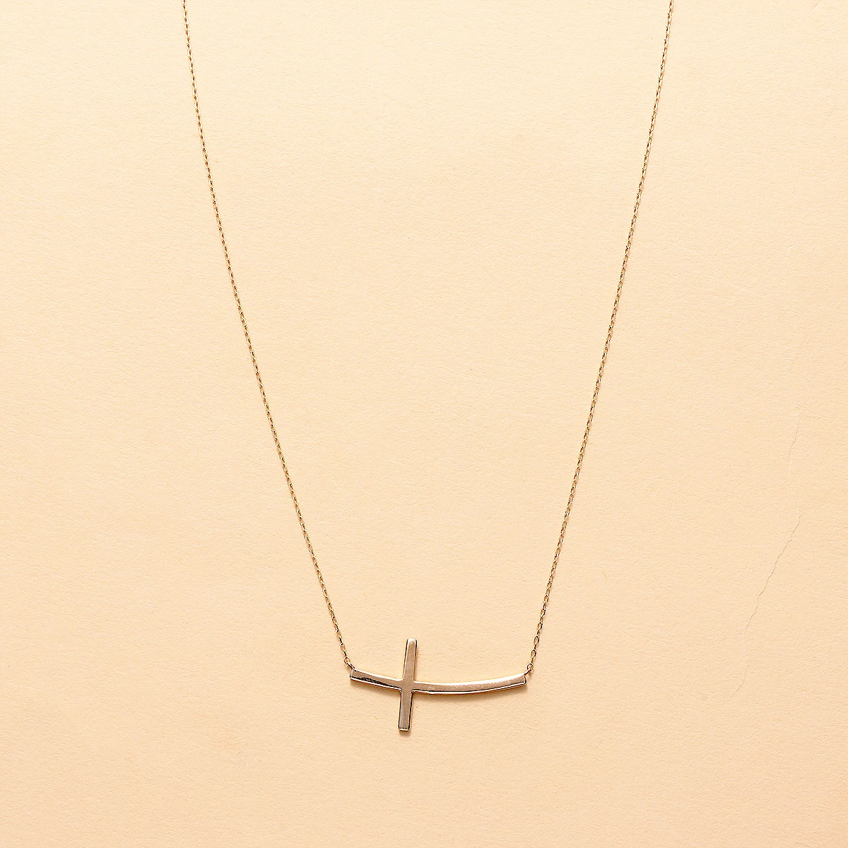 横向きのクロスがふんわりとやさしい笑顔を描き 胸元にそっと幸せを灯すような遊び心あふれるデザインのネックレス