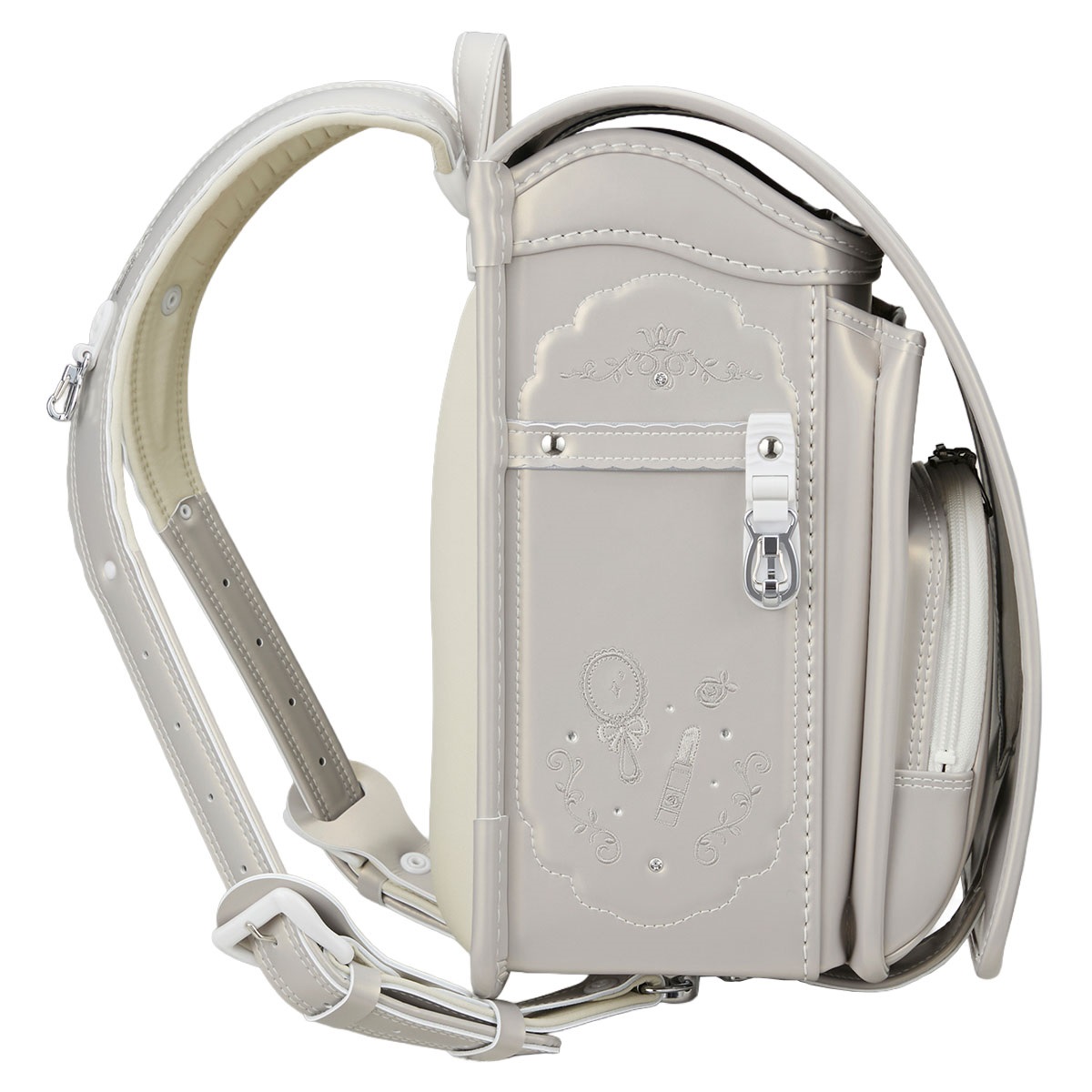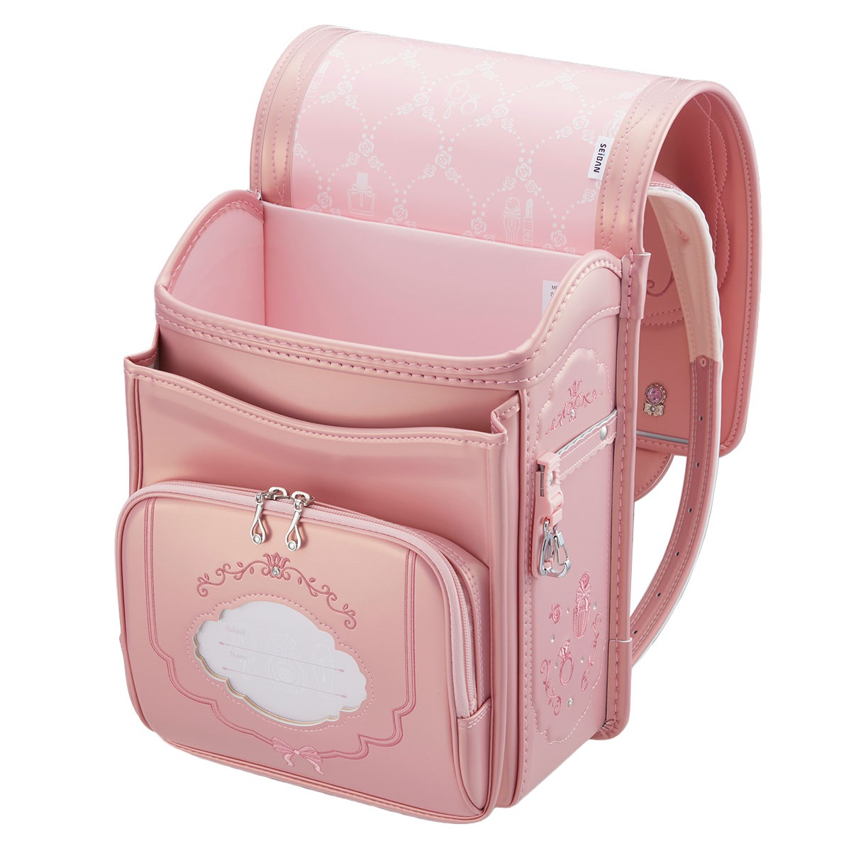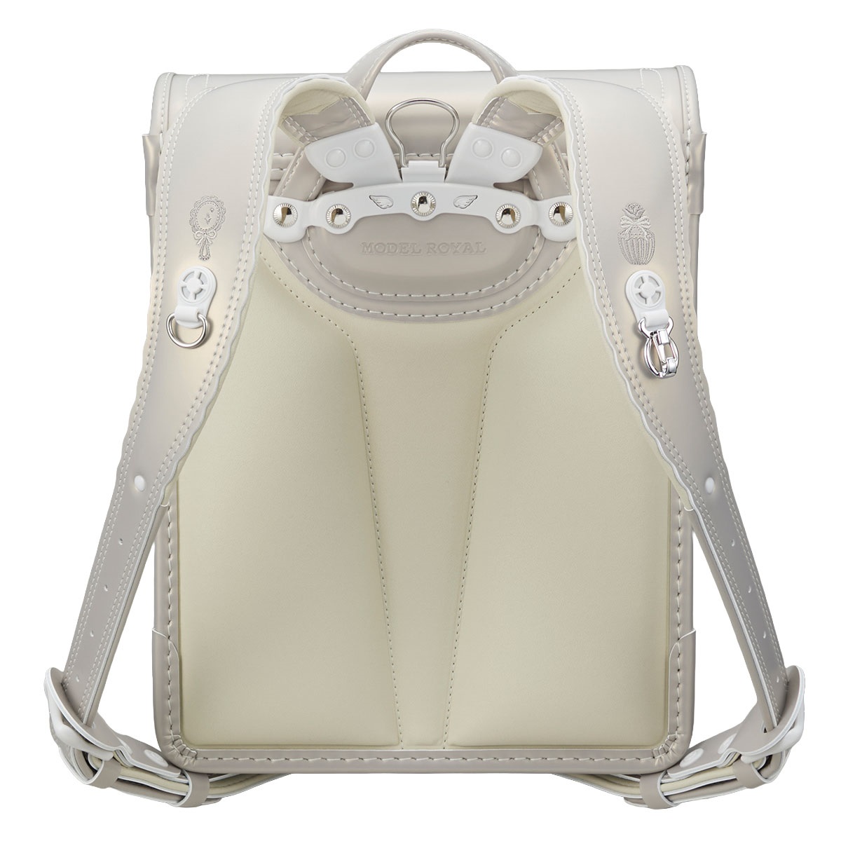 上品に輝くパールの生地で、華やかなコフレのきらめきを表現したランドセル マジカルロック採用