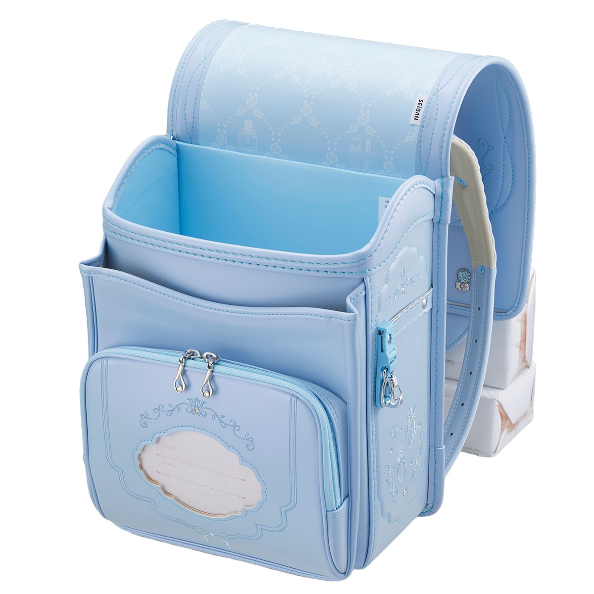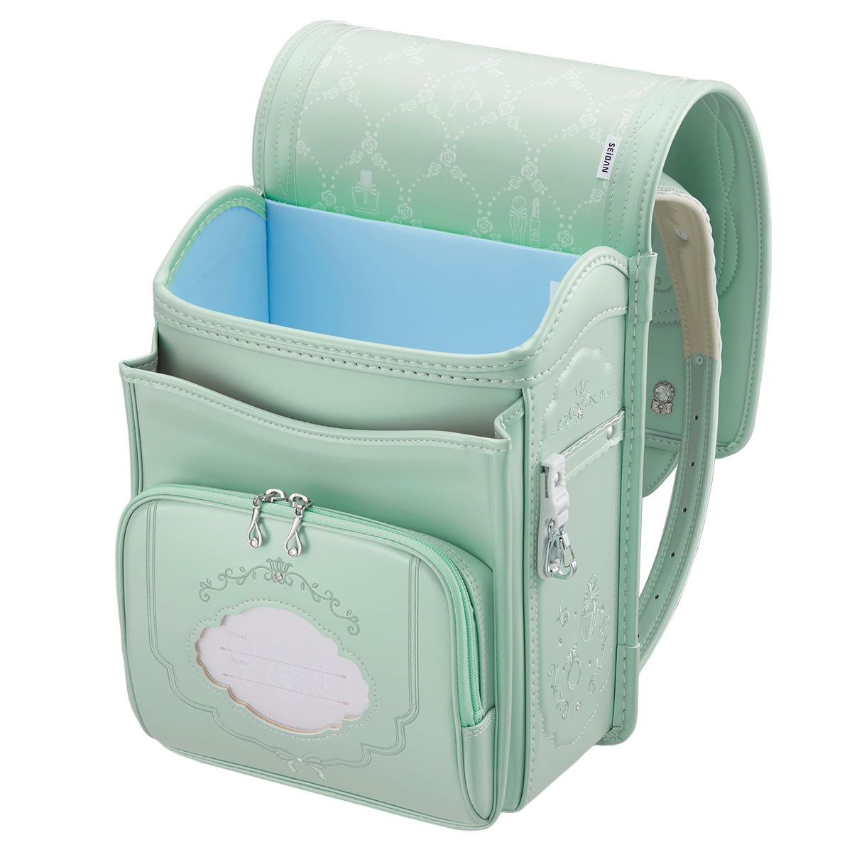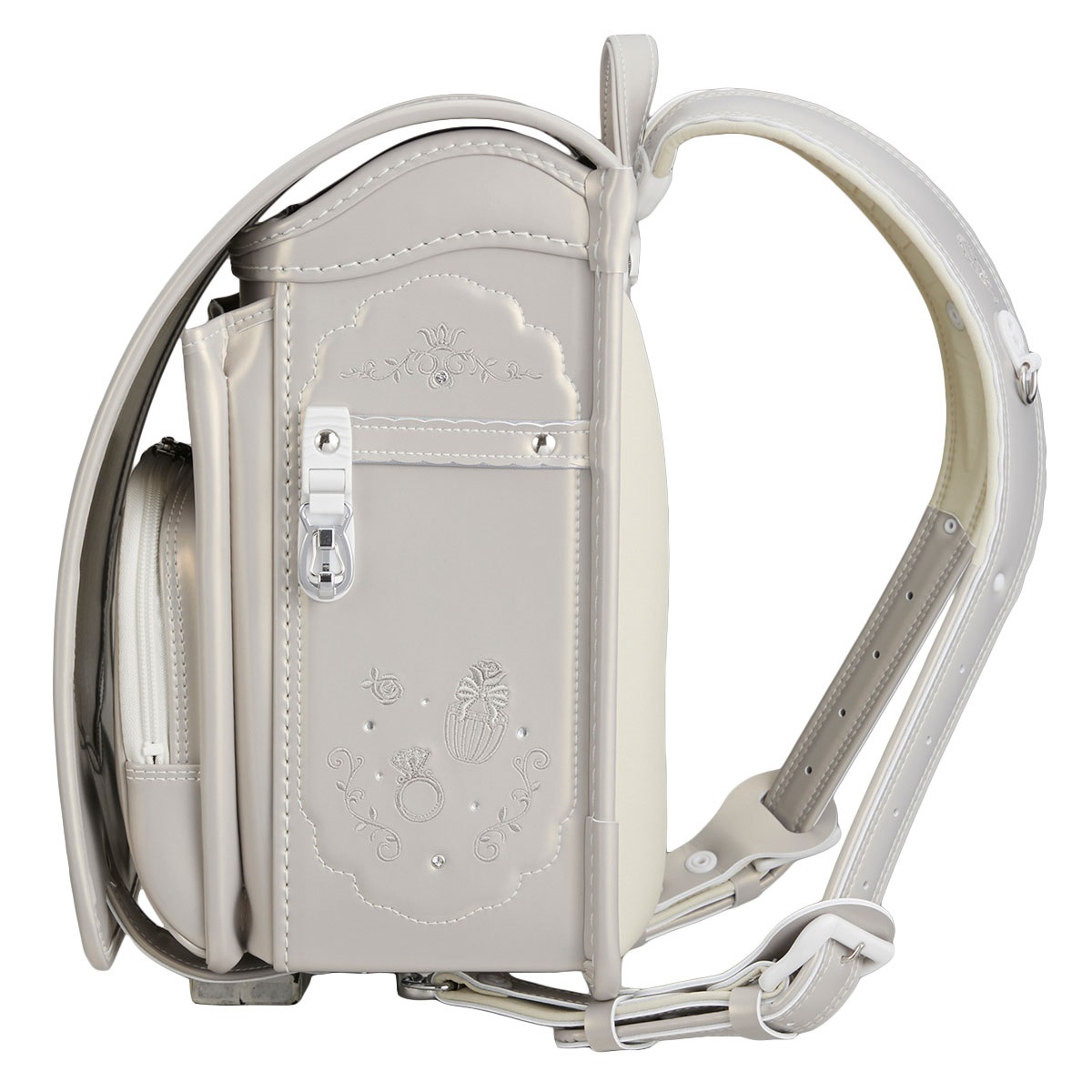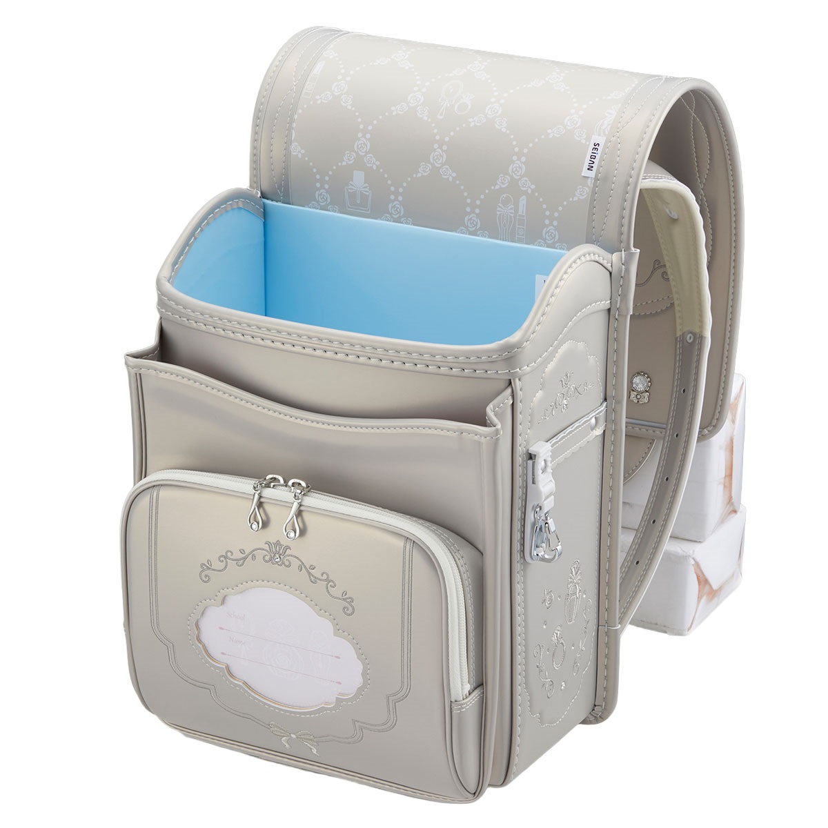 上品に輝くパールの生地で、華やかなコフレのきらめきを表現したランドセル マジカルロック採用