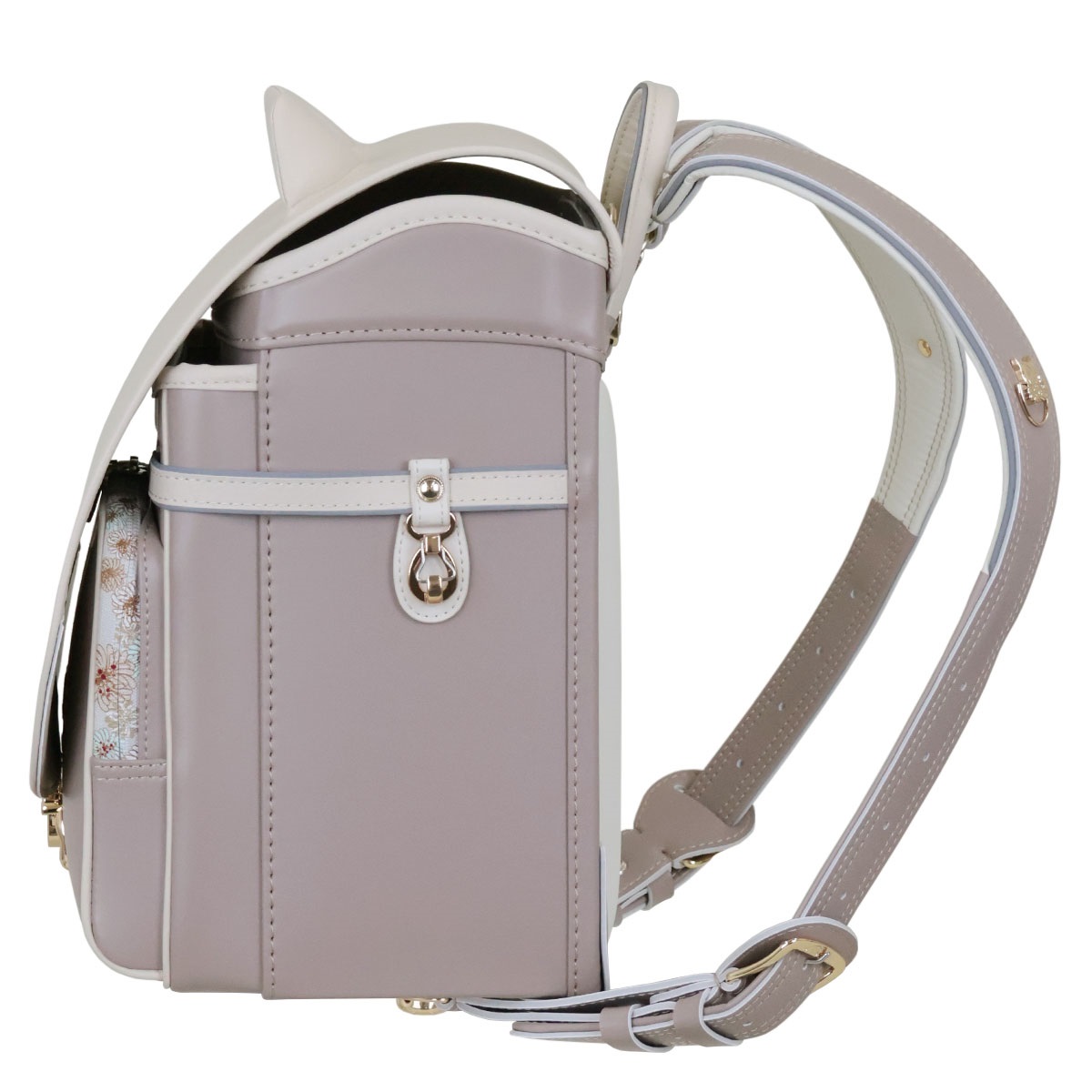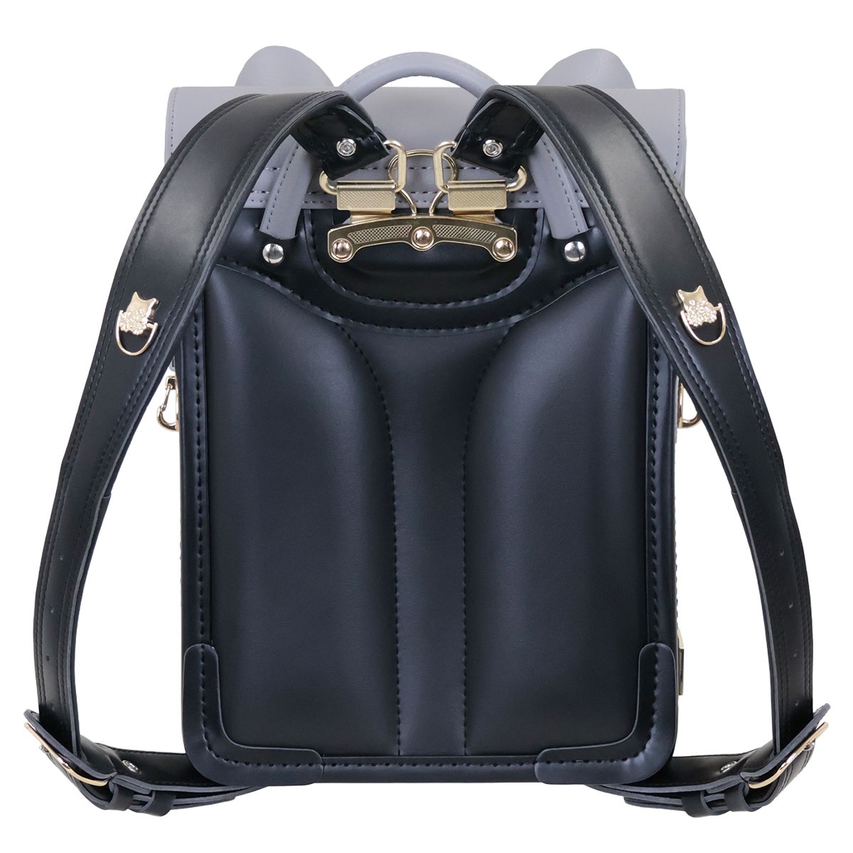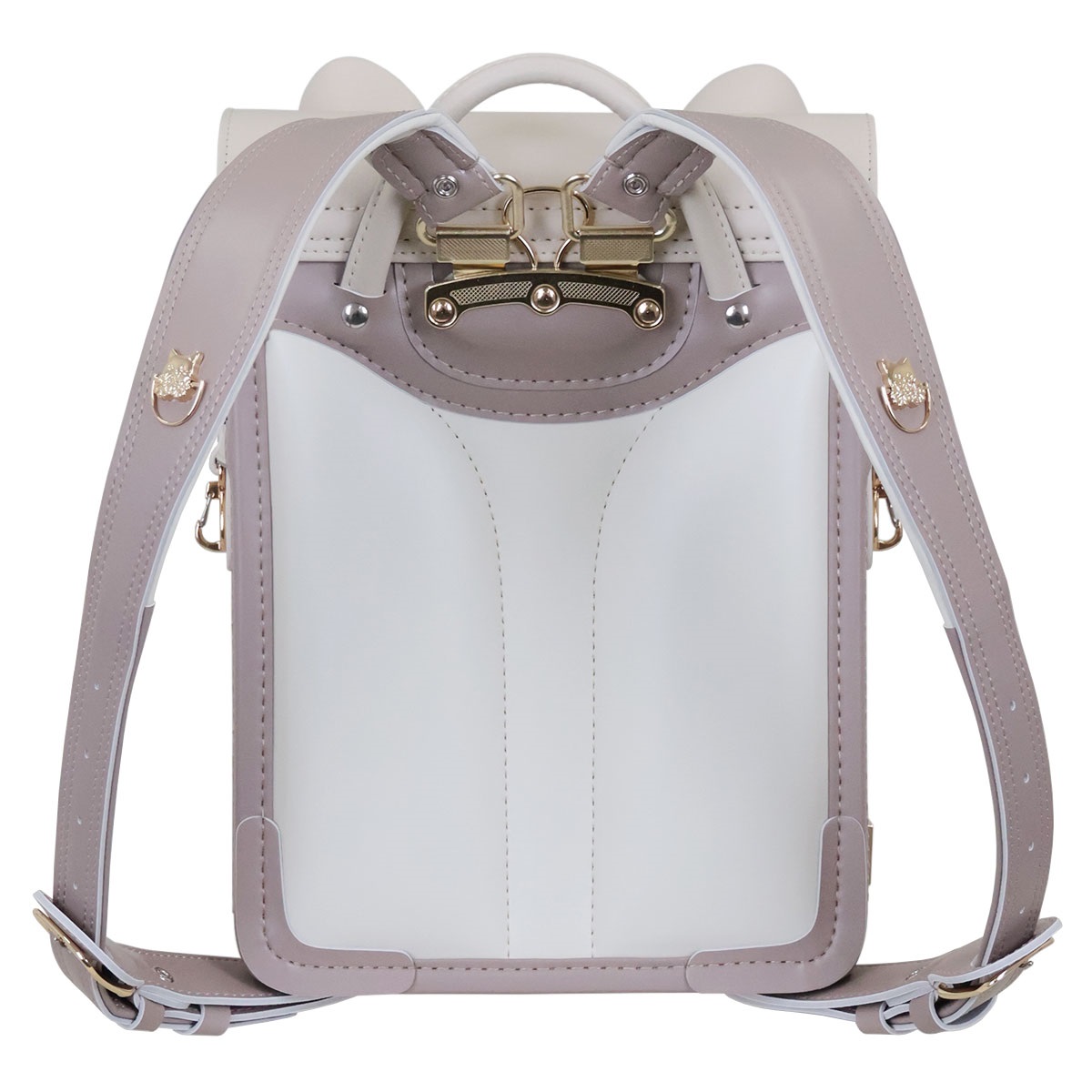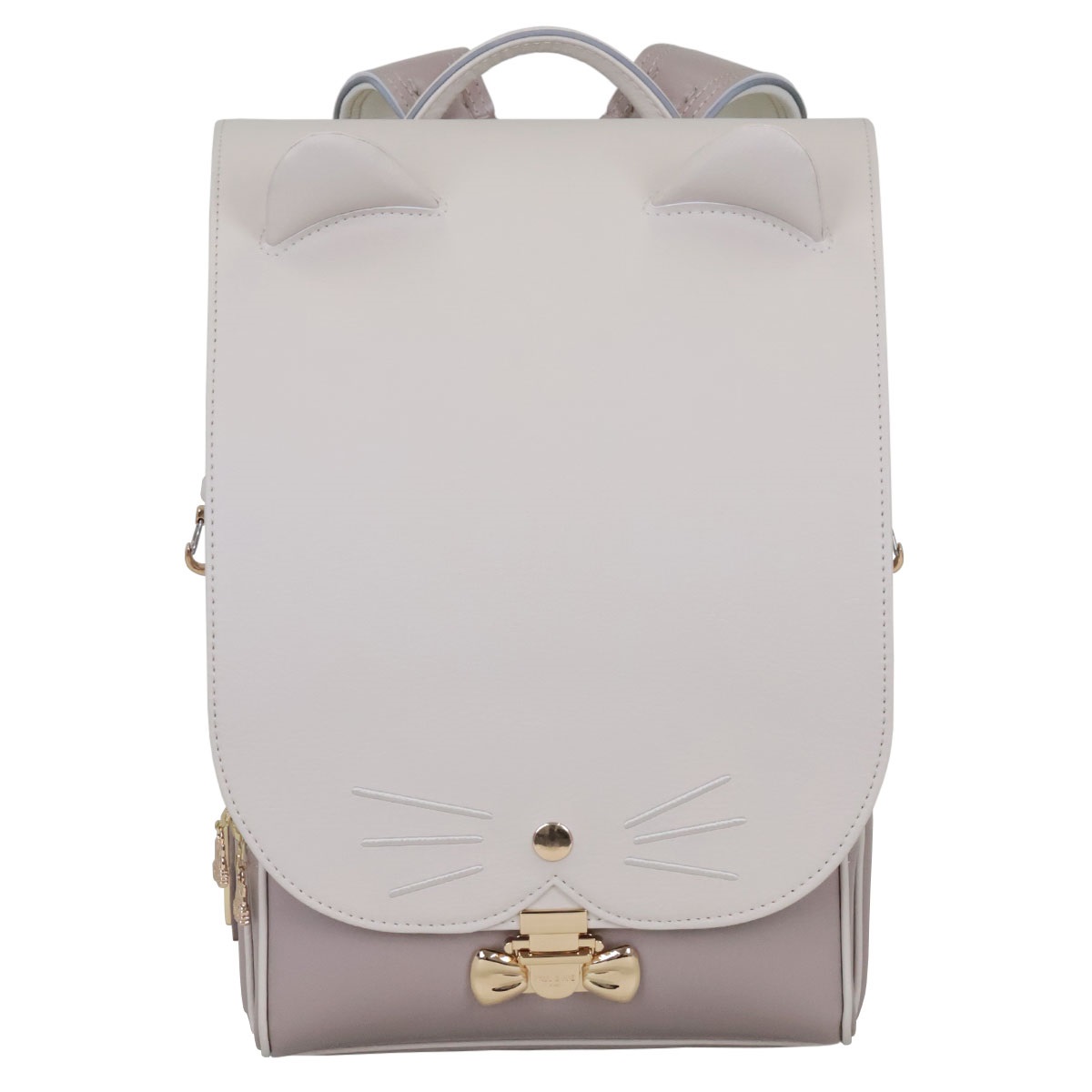 思わず目を惹く、耳のついたネコ型デザインの半かぶせデザインランドセル